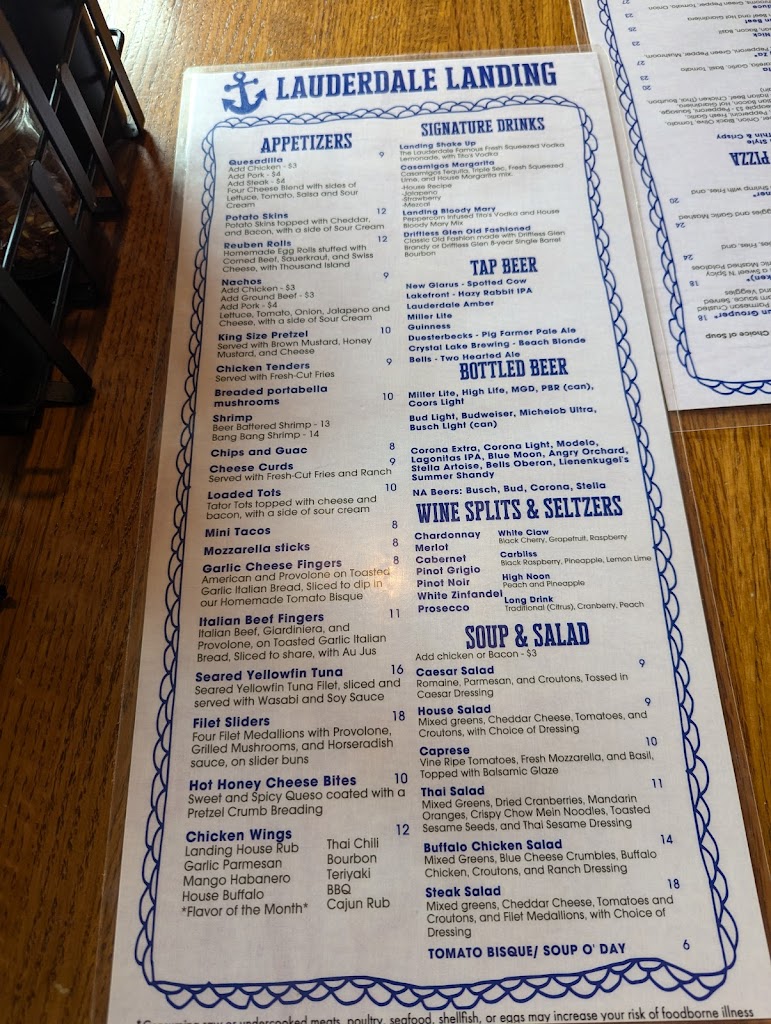 The Landing is a Lauderdale Lakes staple. I have visited MANY times over the past 35 years and have seen many owners come and go. While I'm happy someone purchased it, and it's not condos, the service needs an upgrade. The staff just seems miserable. I don't mind the slow service, but I friendly demnor would go a LONG way! Food is ok, you're paying for the convenience after a long day on the water.