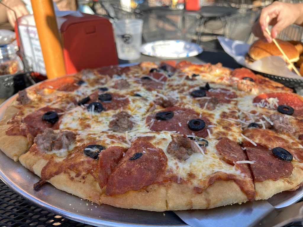Really good pizza, nice seeing and location. Outside seating available. Friendly bartenders