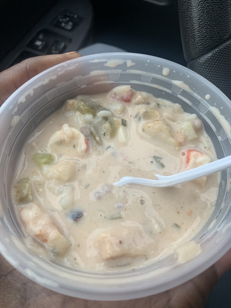 Do not buy that gumbo it taste like blended fishy swamp water!!!! & It’s full of imitation crab, Cut up pieces of eggs etc. worse stuff I ever taste in my life!! I didn’t even know gumbo could be white!! They need to name that something else because that is not gumbo!! I’ve had other food here that is great but this review is strictly for the gumbo or white slop swamp water