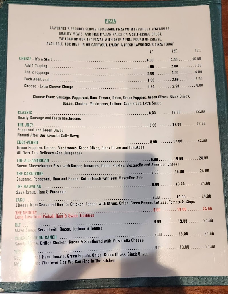 Lawrence's every day service and food is what other restaurants can't achieve. They care, they are friendly, casual, and personable. Food is great!