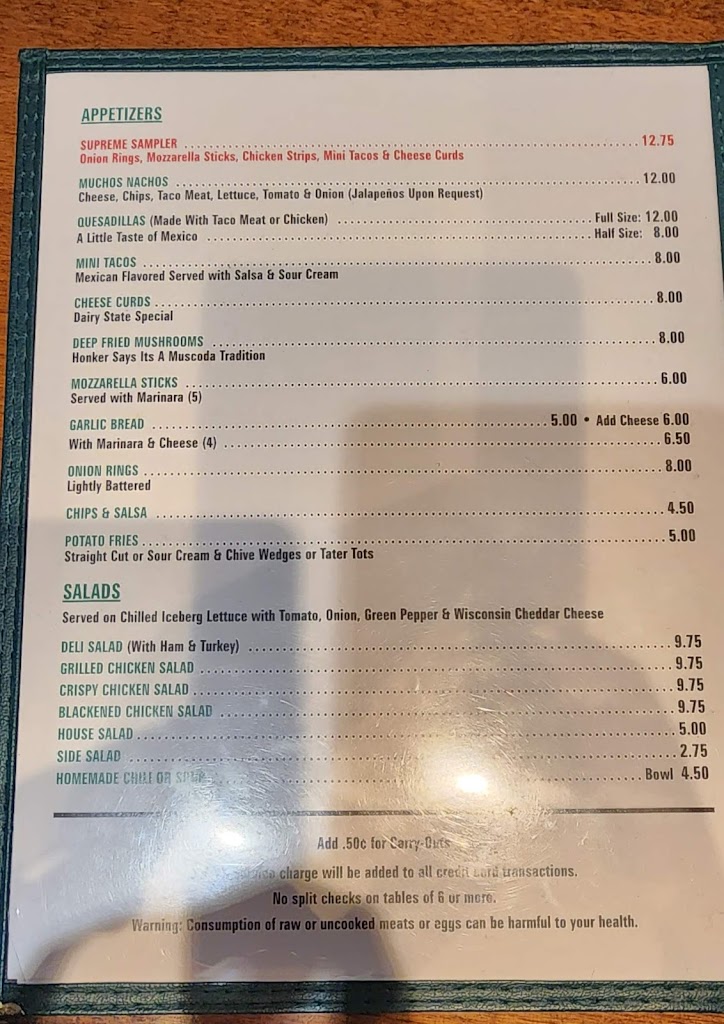 I have been here for Friday night, fish fry multiple times… The fish is wonderful. The selections are great. The salad bar is amazing! My favorite is that you can get potato wedges that automatically come with ranch to dip them in! The cheese curds are phenomenal. The service is wonderful. I've never had a bad meal or experience here.and every burger I've ordered has been fantastic, even had the chicken Philly melt, which was great. Pizzas are delicious. I've had to take out and eat two different times in. Always wonderful.