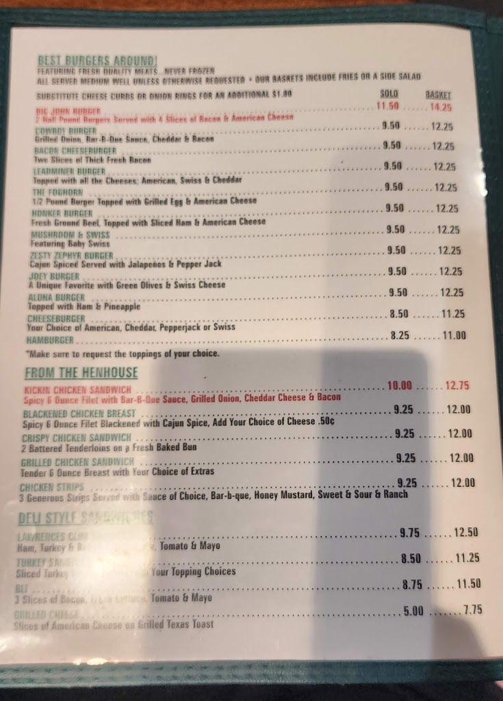 Great burgers, always love chicken specials with mashed 'taters and gravy.