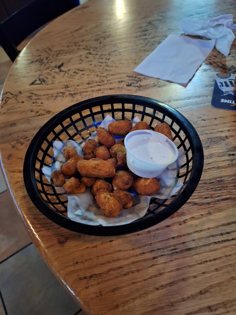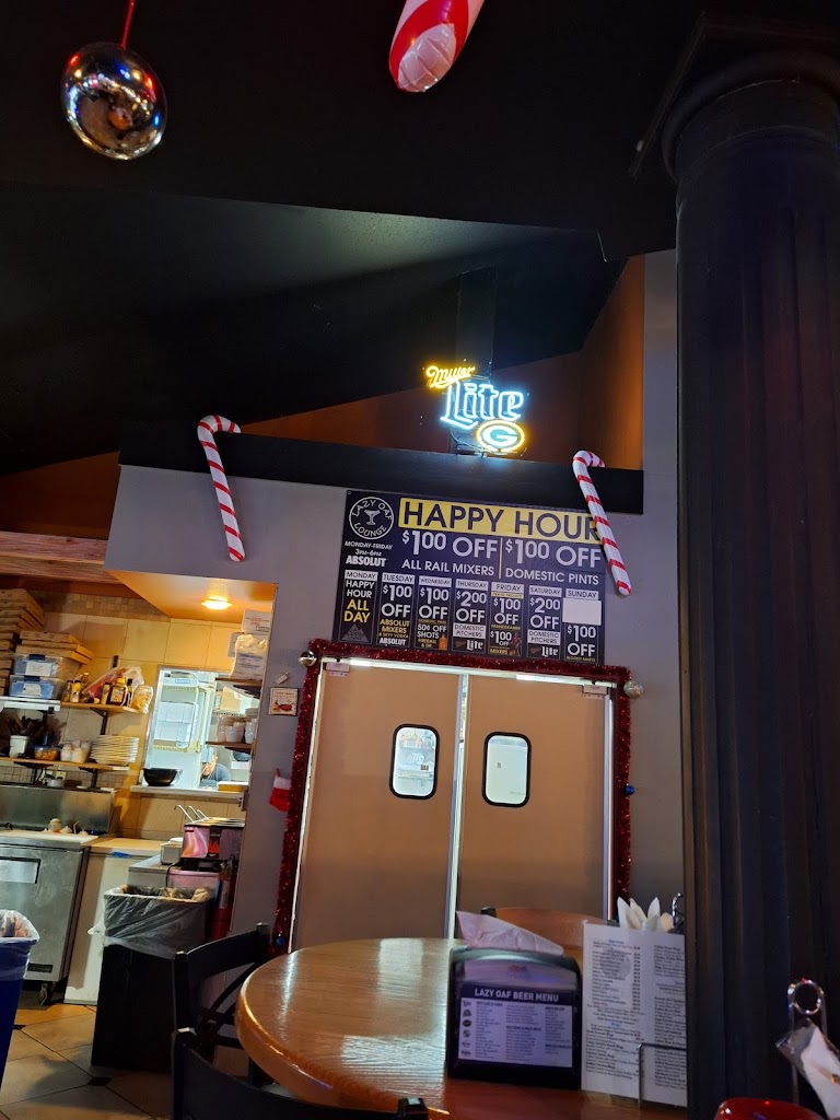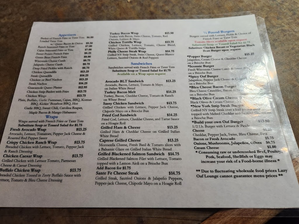 We were between flights at Dane County Regional Airport and were hungry. The Lazy Oaf was a short drive away, so we decided to try it. The staff was very friendly, welcoming and accommodating to our situation. The pizza and jalapeño cheese curds were good. The Brandy Old Fashioned Sweet was also good! The atmosphere was warm and welcoming.