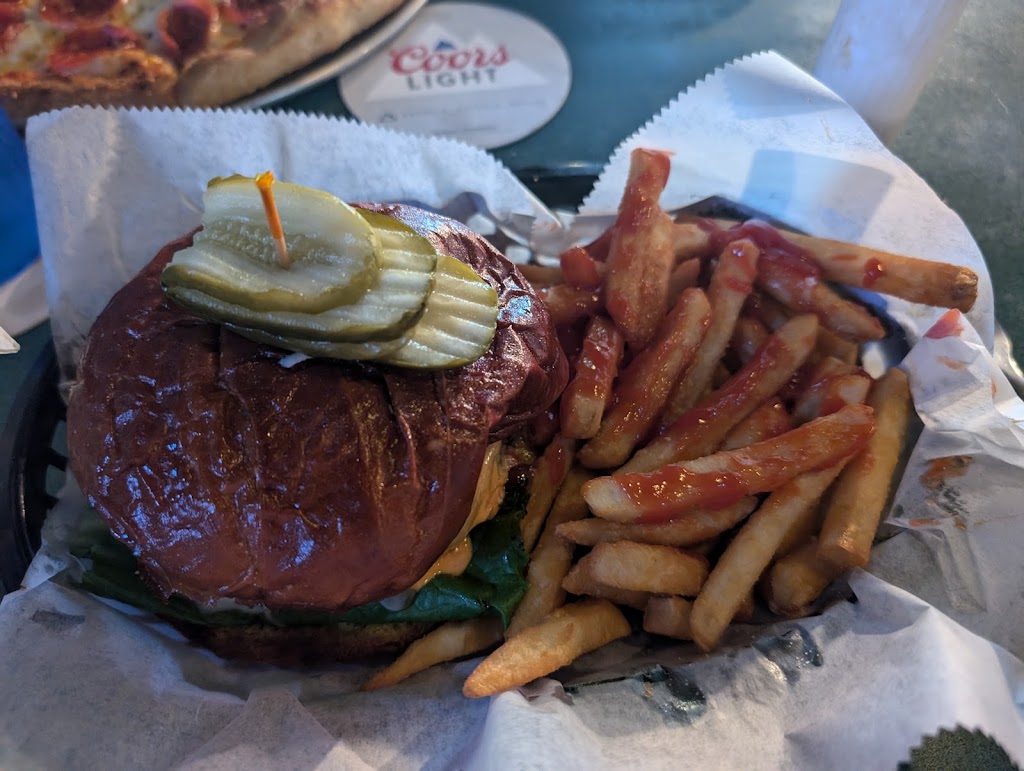 The burgers looked good and I like the atmosphere of the bar/restaurant.