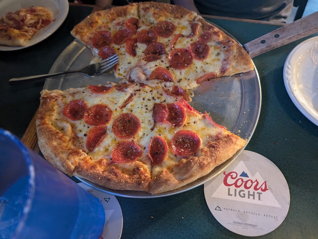 We got nachos as an appetizer, the chips were a little too salty. Then we got pizza, bland. Our waitress was very nice and friendly. I definitely don't think I'd go back again