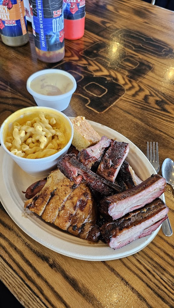 The best BBQ in the area! We come here often. My favorite is the pulled pork nachos, my husband's is The Darby with sausage & kids love the Mac & cheese. The cookies & banana bread pudding is also a favorite. Generous portions, clean atmosphere and the owner Leon is kind & outgoing to everyone who comes through the door!