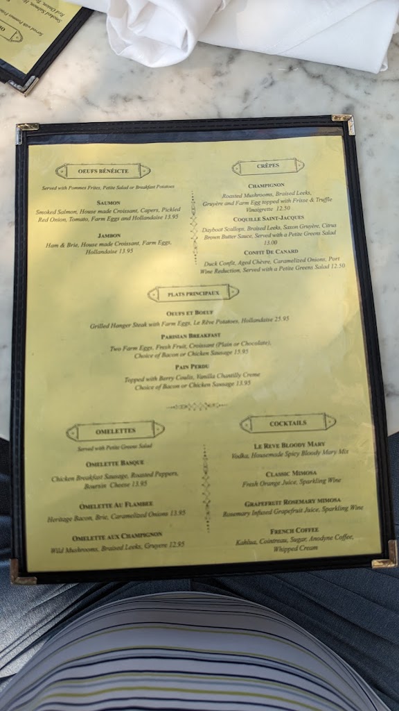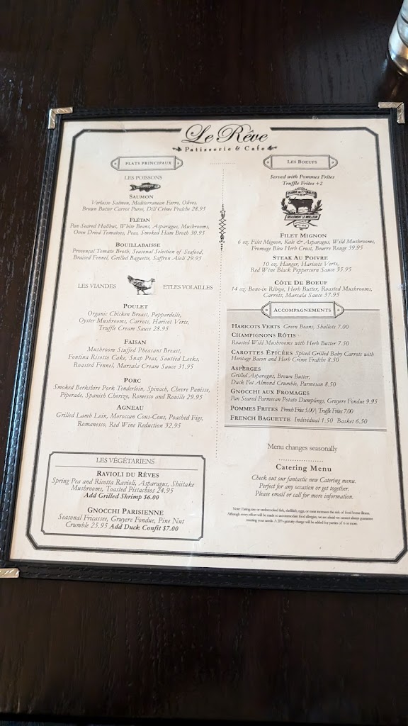 This was a less than desirable experience. First of all, the maitre d was extremely rude and kinda condescending. I am disabled and went with my sister, who made a reservation in advance, as well as informed them of my condition in advance as well. She asked that we be given a table with ample room. When we arrived, the maitre d didn't acknowledge the previously made reservation/information or perhaps she just ignored it entirely. While my sister was inside the restaurant speaking with the maitre d, I was waiting outside, seated at a table for four people. When both women came outside, both my sister and I expressed that this table would be perfect and asked could we be seated. The maitre d curly said no, and proceeded to seat us at a small, round cramped table. I spent my entire meal with my walker handle poking me in my ribs. The table was so small that our waitress had difficulty placing what we ordered on the table and could only do so by either removing something else or transferring something prematurely to a carryout container and bringing it back once we were ready to leave. After we had been there for about 30 minutes, the maitre d seated a couple at the four-person table we had initially requested. They were both able-bodied people that could have easily been seated where we were with minimal difficulty. That was the final straw! Our waitress was decent but seemed a little overwhelmed. However, she was very pleasant and tried to be as accommodating as she could. The food was exceptional. But for me service is just as important as the cuisine. La Reve's service was extremely, extremely poor overall. It put a serious damper on the entire dining experience. I'll never go back there.