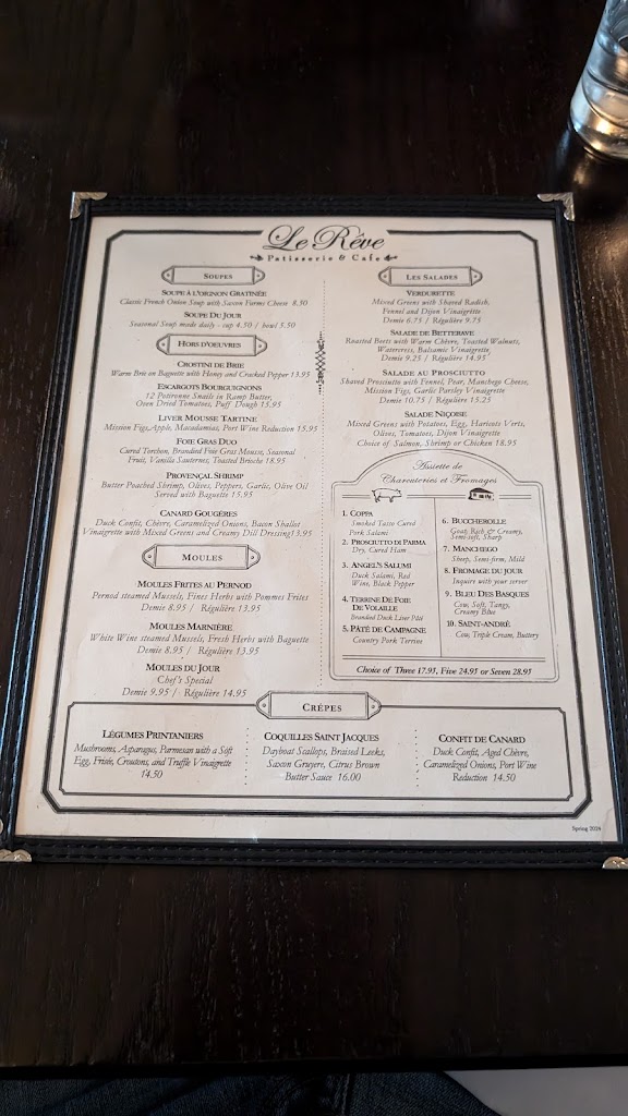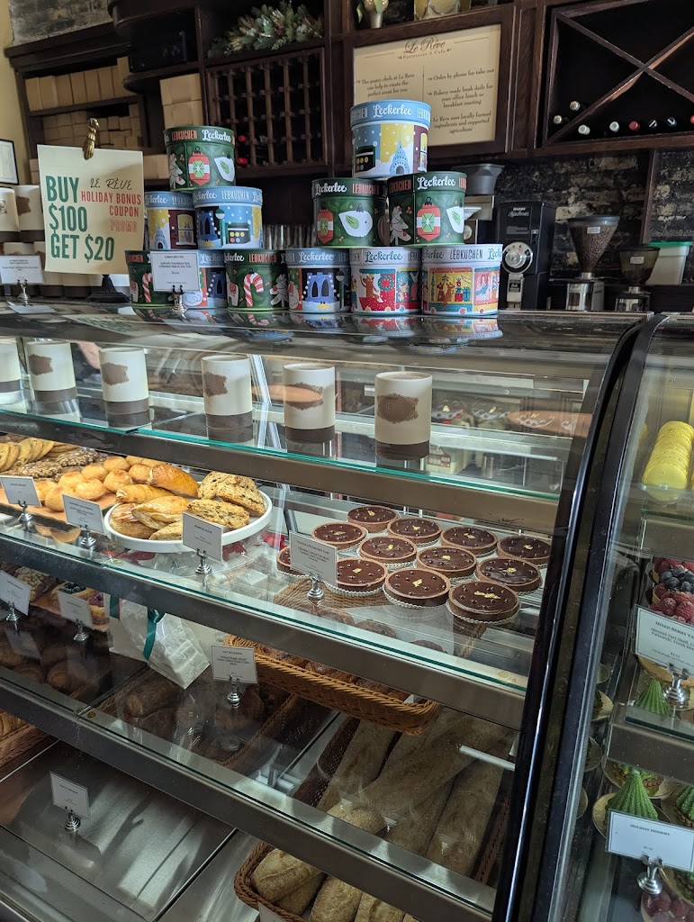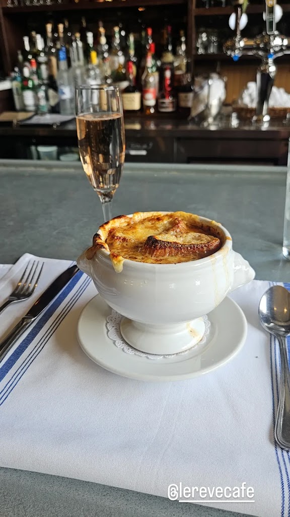 The menu at La Reve is classic French, and the food is well-prepared. The pâté de Campagne sandwich ($15.95 plus tax) has pork pâté, cheese and cornichons served in a crusty baguette. The fries, as expected from a French bistro, are done just right. The bi-level dining areas are simple, unfussy and comfortable.