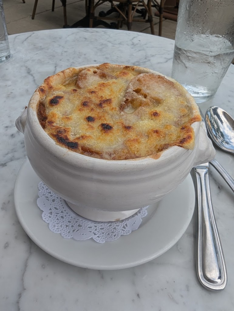 Food is nothing original, I had the cassolette of mushrooms it was so salty! Onions soup and croque monsieur are good! Croissant just ok