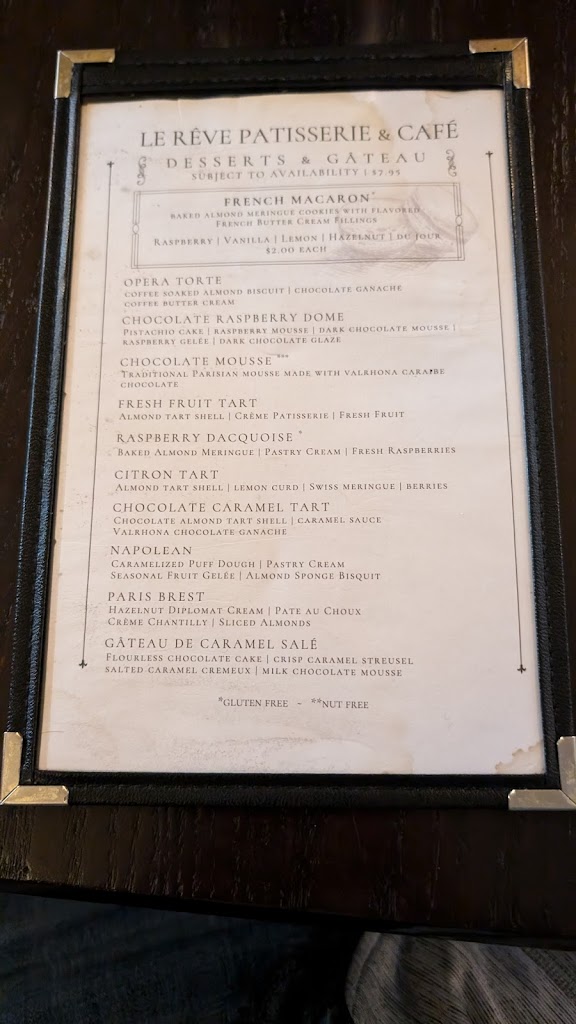 Desserts are are work of art and taste as good as they look. Paris Brest reliable favorite.