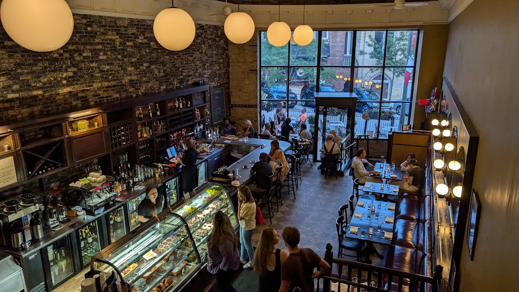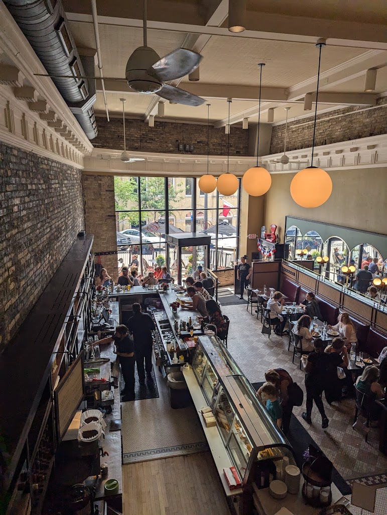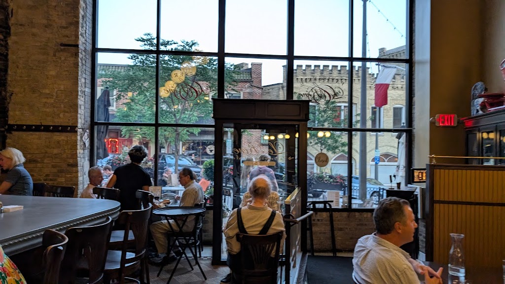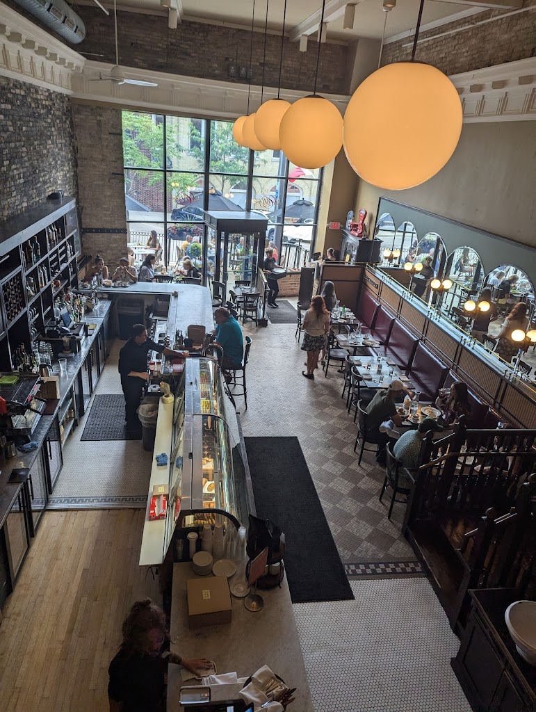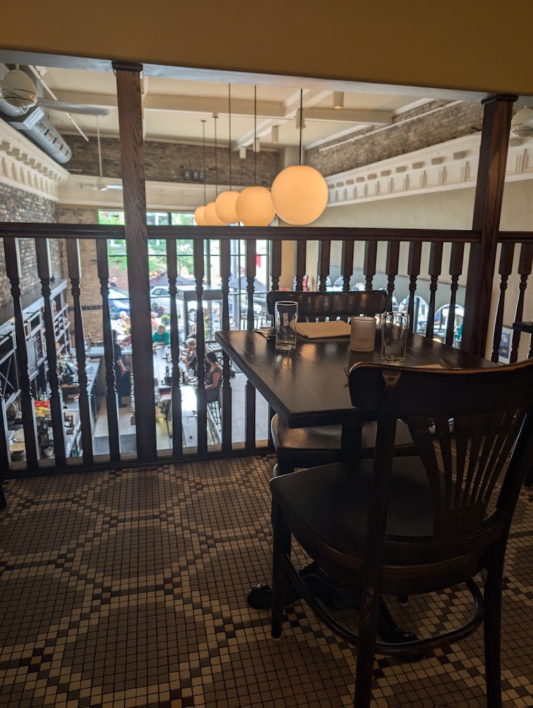 Take a trip to a Parisian bistro in ‘Tosa! Gorgeous setting in what used to be a bank. Ultra high ceilings (?20 feet?), bustling, bursting with character. Bar seating, tables along wall or second floor tables. If you are really lucky, you will score the front window four top.