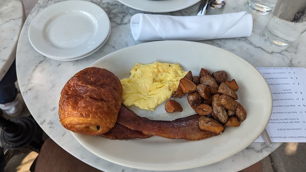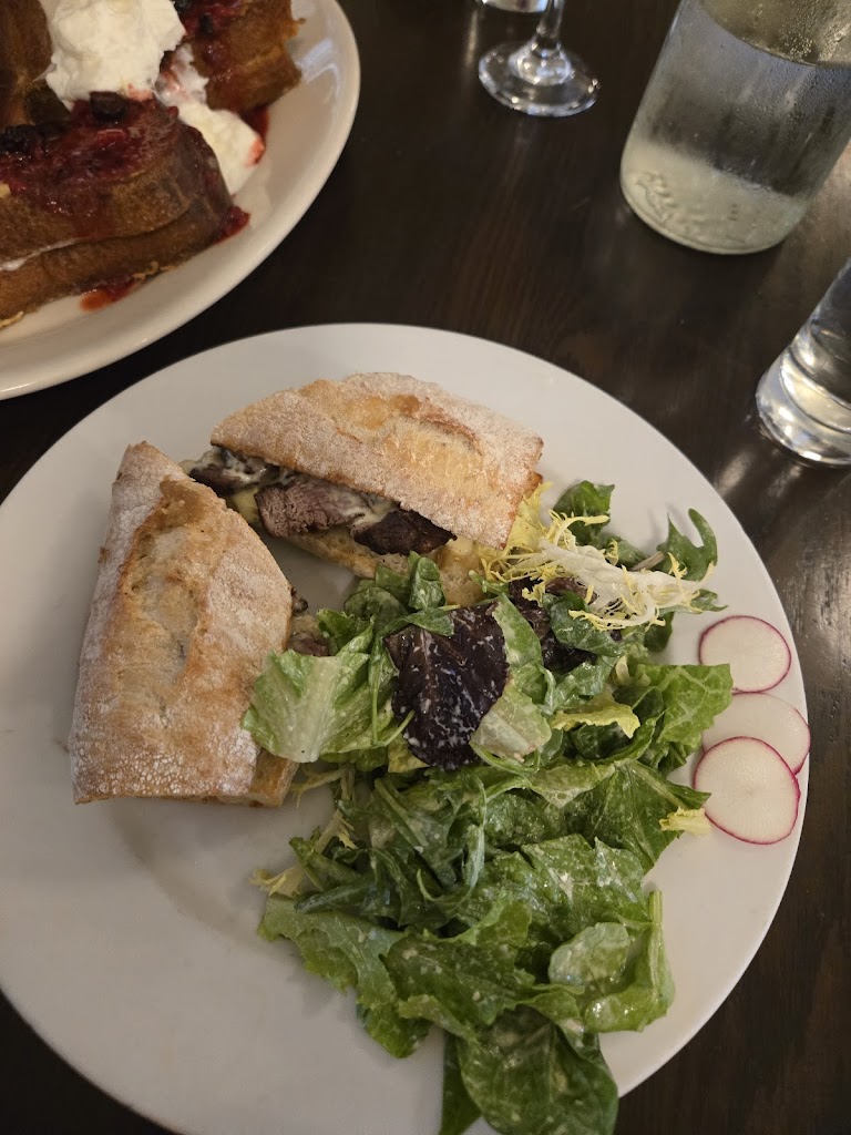 Sat outside on a Saturday for breakfast. Our server, Sereniti, was just excellent. She was friendly, funny, had several tables and never missed a beat keeping up with everyone. The food and pastries were just excellent, the atmosphere is great both outside and inside, you have to look in the pastry case. Wow. Absolutely recommend this place. Returned a year later, had dinner and it was also excellent and the service was good. Very French for dinner, but I had a filet and it was great.