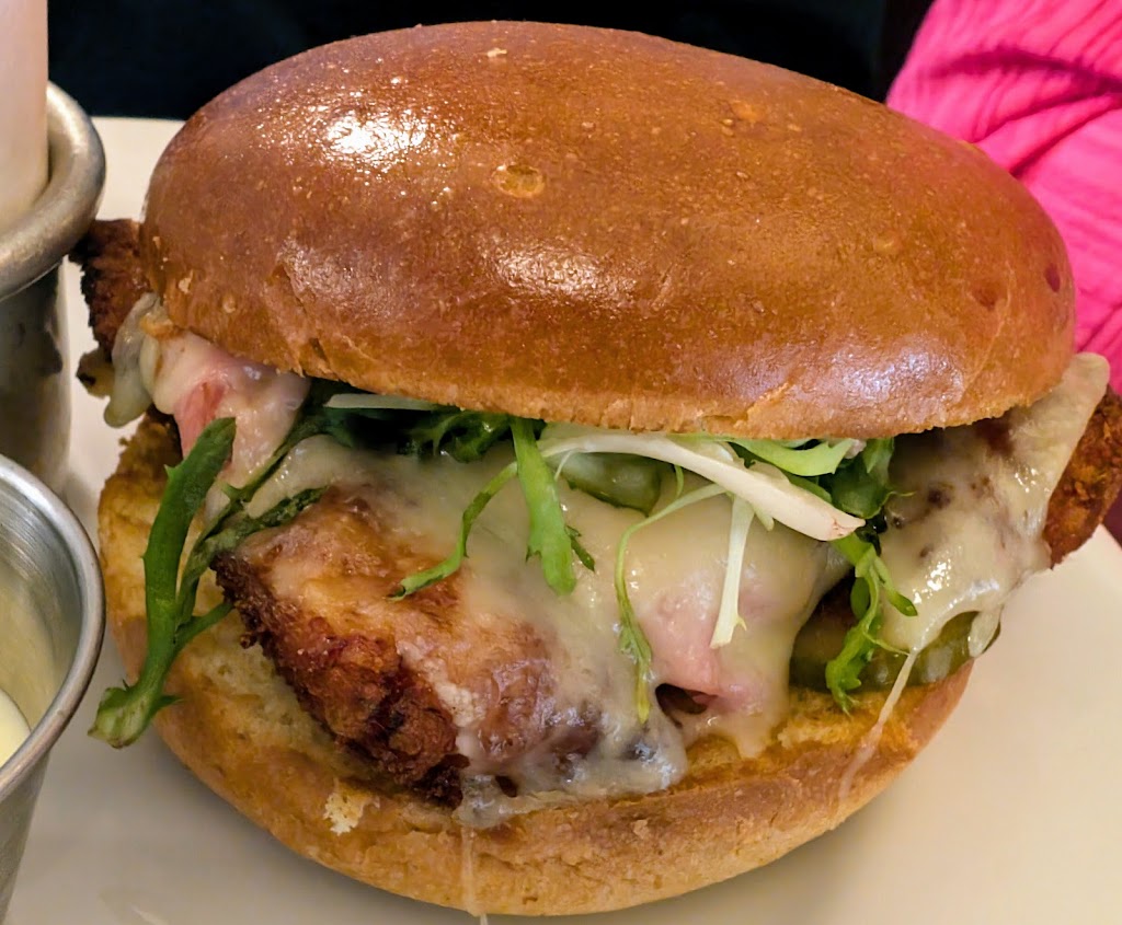 My pork sandwich was excellent. The fruit tart was fabulous! Next time, just dessert and coffee, because I want to try more of their beautiful desserts.