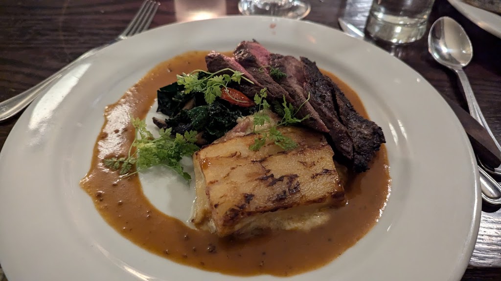 I also feel like I should point out that whoever was running saute made me one of the best sides of risotto I've ever had(summer corn w/ a parsley chimichurri I think). My steak was dry and grainy though. I was finished eating by the time she got her plate. Steak cooked medium rare(and actually juicy). It was a very good steak, good enough that I actually regretted not sending mine back too.