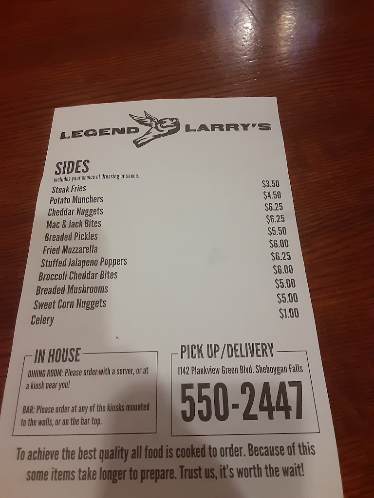 This is the legend Larry's to go to. Their wings are always great. Their drinks are good. The service is very good.