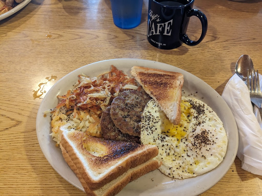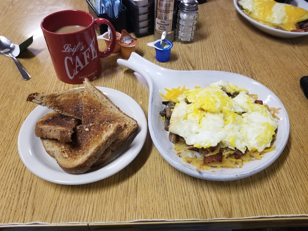 Our favorite place for breakfast in the northwoods. We discovered this place a couple years ago and now we make a point to frequent here whenever we are up in the area. My go to is the eggs with bacon, American fries, and toast and it never disappoints.