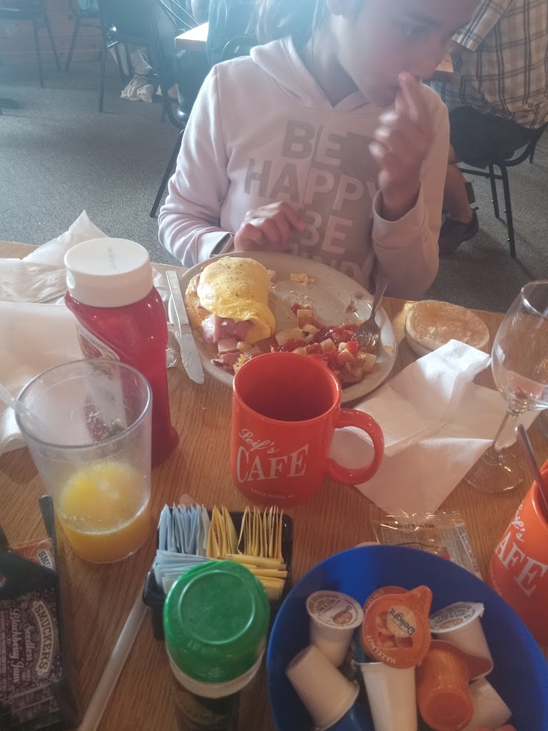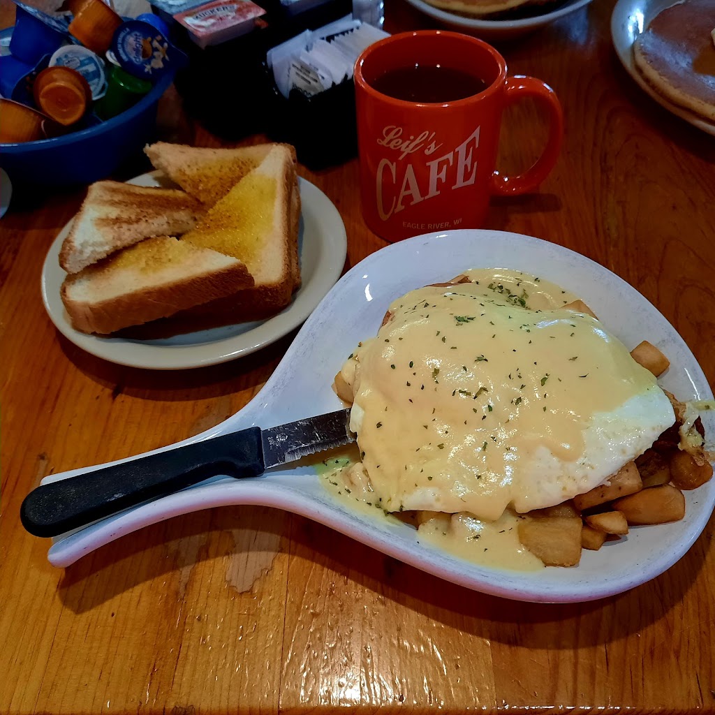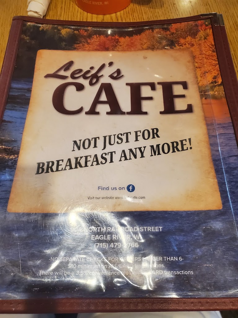 Nice cafe in Eagle River, WI. This family restaurant has a large menu selection..ample seating. Outdoor seating also available. Breakfast items were good. We had an omelet and a breakfast skillet. Check hours of operation...as I believe they close early on certain days.