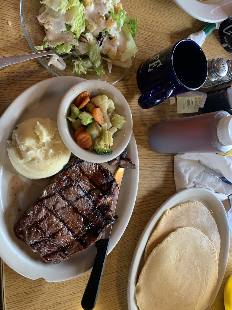 My wife ordered the chicken and dumpling , the dumpling was very dry. I ordered the chicken fried steak and my whole meal was cold. The carpets were filthy dirty , not a good experience