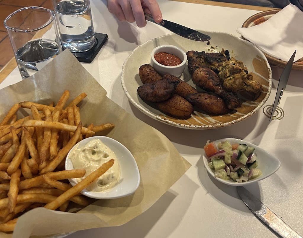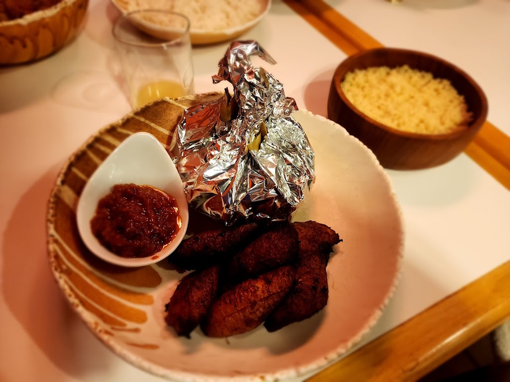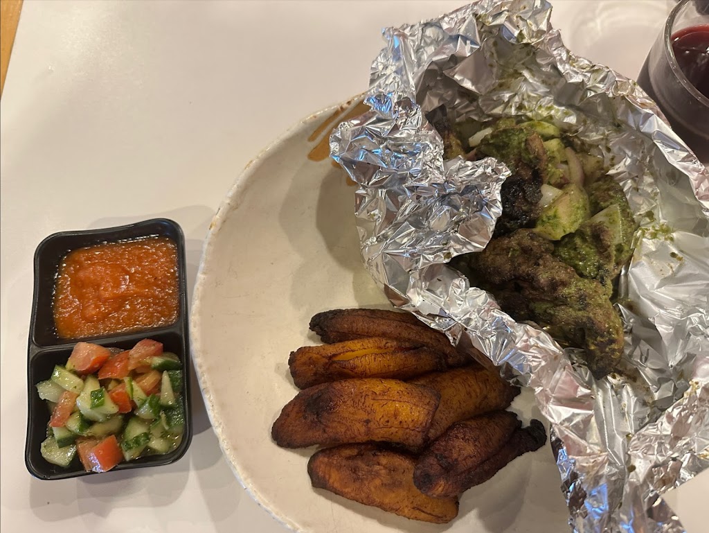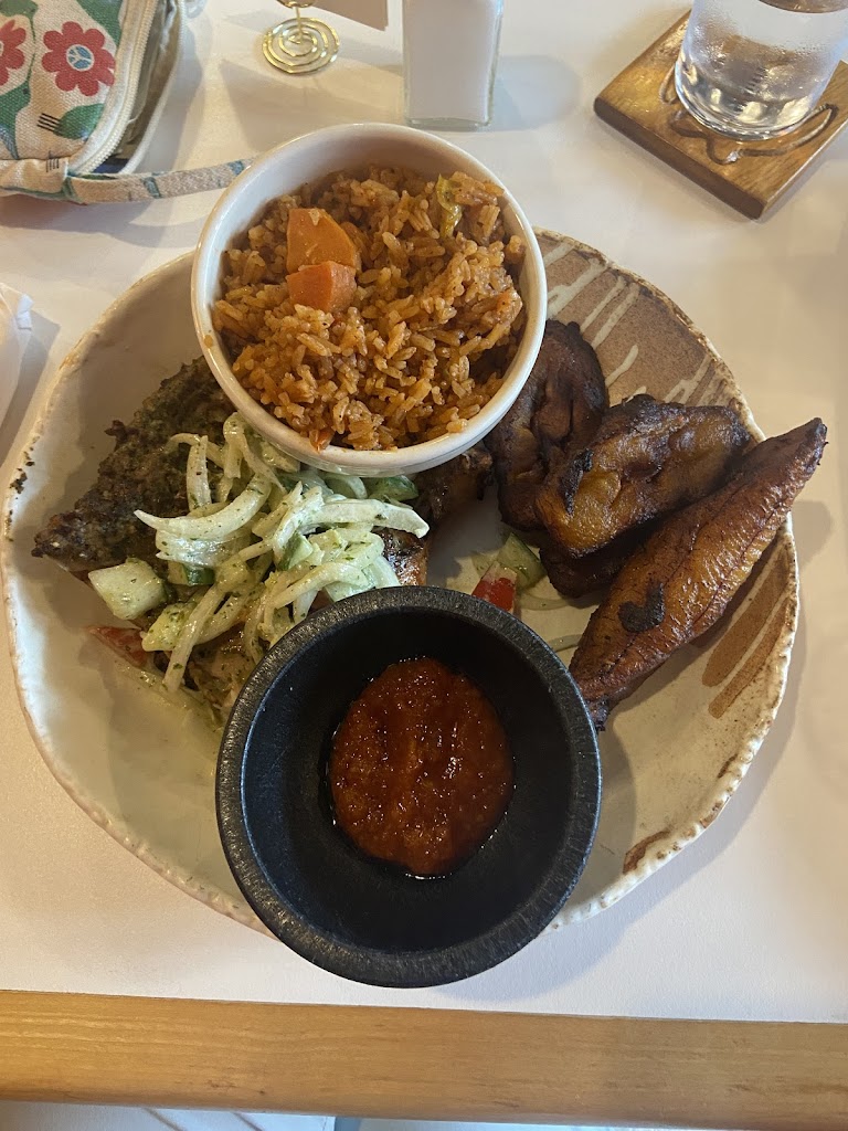 chilies (though they make hot sauce you can request). We had a pike that was perfectly cooked, chicken that was moist and tender, plus goat that was exactly what goat should be. All the sides were good, but the plantain!!! The best I’ve had in Madison. We also loved the relaxing decor, music, and atmosphere.