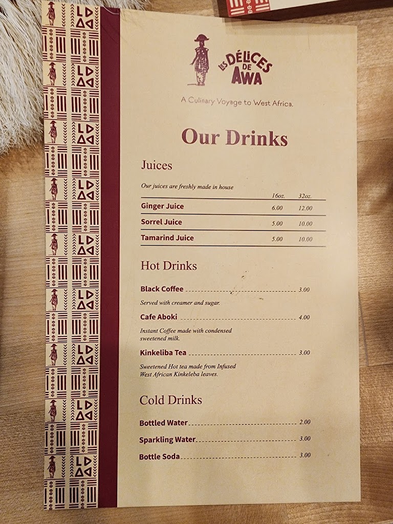 We just ate at Les Delices de Awa, and I can’t speak highly enough of our experience. The Sunday menu was incredible, with the best dip/sauce I’d ever had served with yucca. I think it was a green garlic aioli of sorts. The chicken was cooked perfectly and was flavorful. My husband had the plantains as well and he devoured them. I’m limited with my experience in West African food, but we will absolutely be going back. The staff was kind, courteous, and helpful. We had our two year old with us and they so accommodating to him as well. Give them a try!