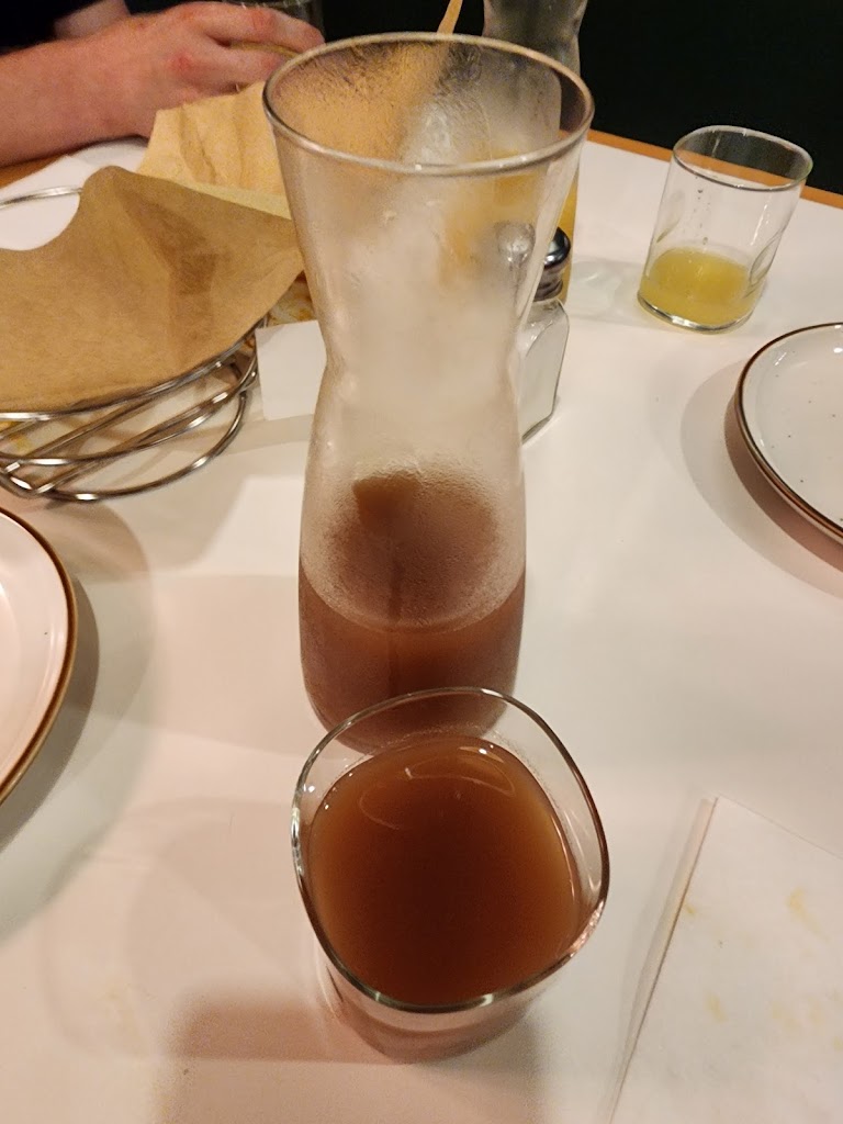 It was a while before a waitress came to our table, so we were ready with appetizer, drink, and main orders. Our juice drinks and one of our appetizers came out about 30 minutes after ordering, and the second came out at about 45 minutes. We never received the 3rd; there was a mistake and it went to a different table. The restaurant took it off our bill when we let them know. Both of the appetizers we received were very delicious.