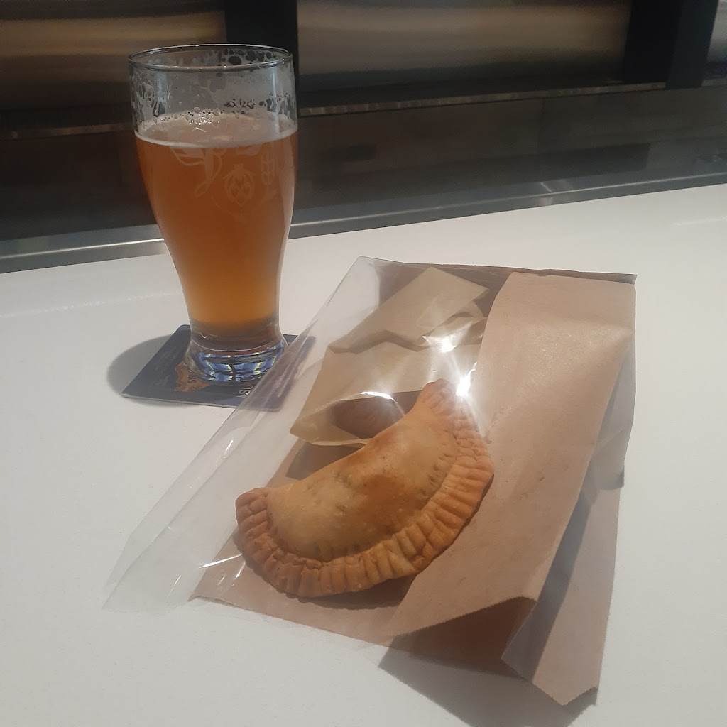 My finance and I wanted a snack before we cooked dinner the other night. So, we got the chicken pastels to go and got a beer over at barley pop to enjoy them with. This has become a habitual routine because they pastels are really that good!