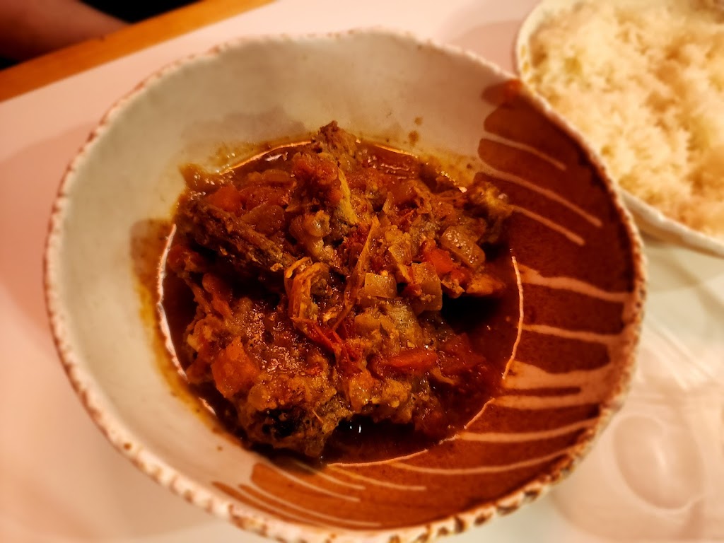 I got the peanut butter stew and fufu with a side of the ghost pepper sauce for delivery. The flavors and textures were amazing! I forced myself to save some to eat later, but it was difficult to stop. So good.