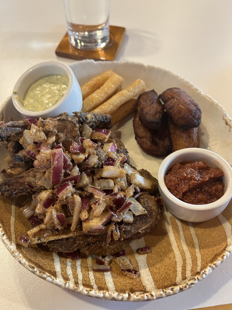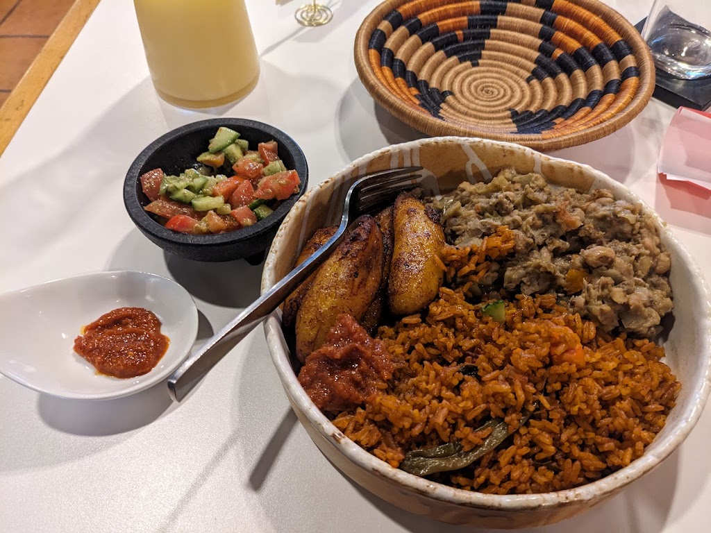 An absolutely gorgeous, comfortable restaurant only topped by the hospitality and food itself! If you’re on the fence, go. If you’ve never had West African food, go. We tried the beef and chicken pastels, lamb and chicken entrees, sorrel juice, plantains, rice, and yucca. I couldn’t pick a favorite because all of the flavors are so good.
