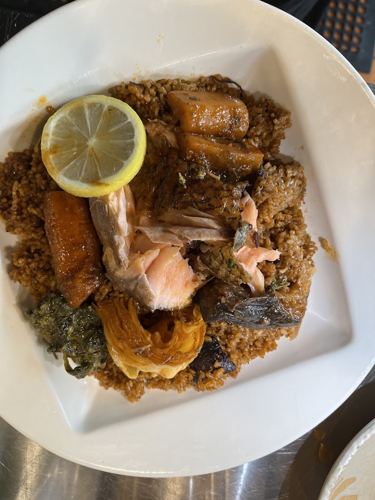 This was a very great African food restaurant, I love the hibiscus juice, and the aroma in the air is amazing. I would highly recommend dining in here. But save me a seat haha. The Jollof rice 👩🏽🍳💋 there are so many options I have to go back for more. Portions are great, everything great!