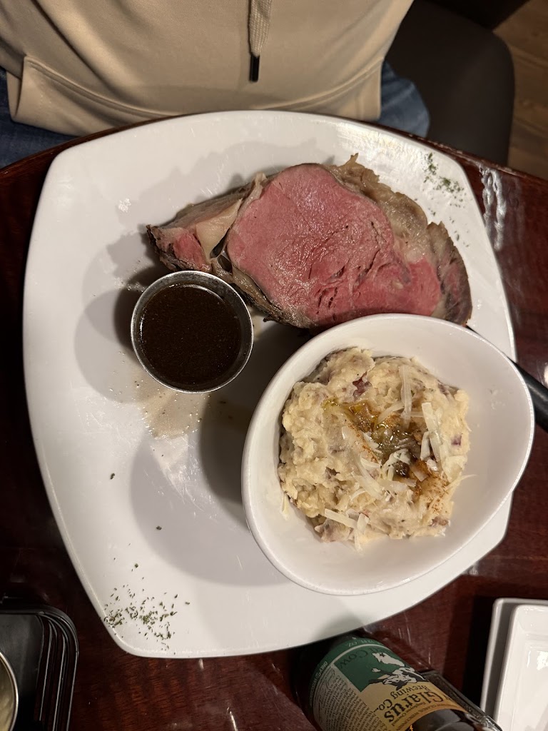 My fiancée got the prime rib and a lobster tail add on. Both were super tender and delicious. The horseradish cream sauce was so good.