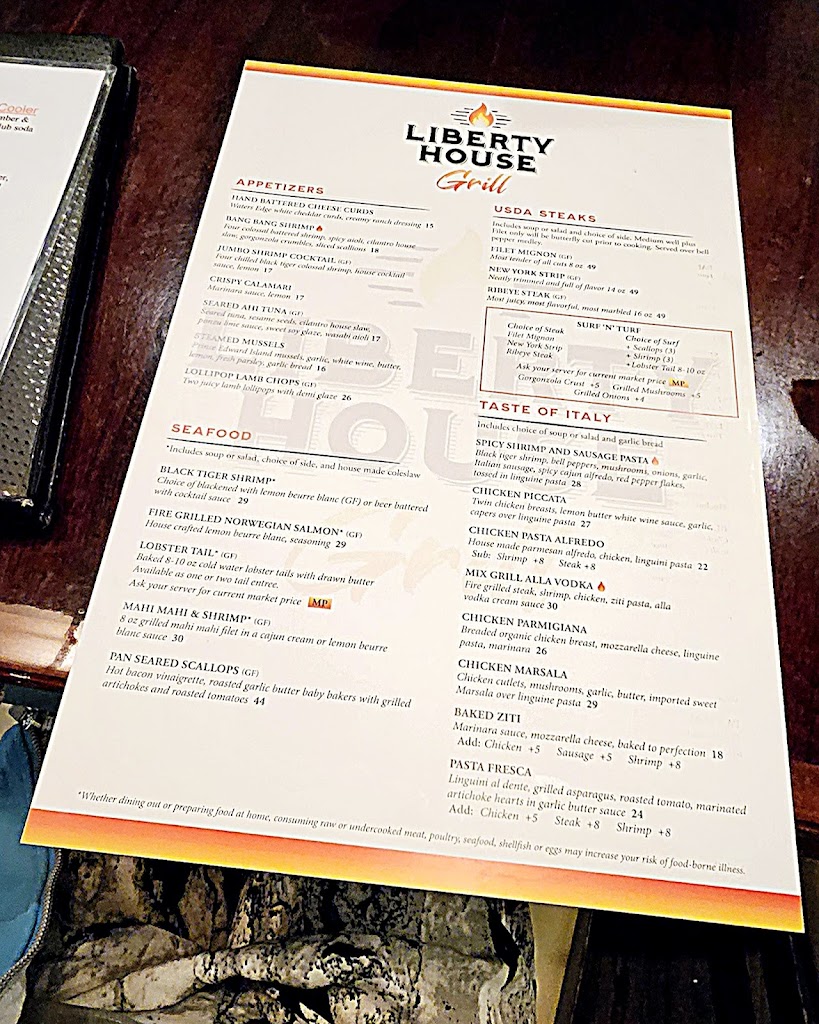 Our first visit to the Liberty House Grill the food is excellent good service friendly staff