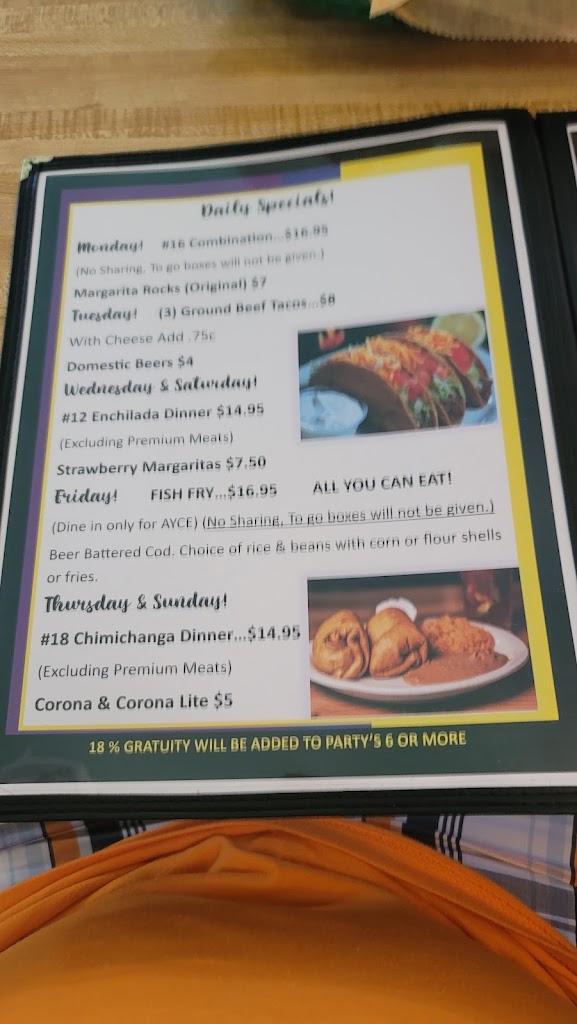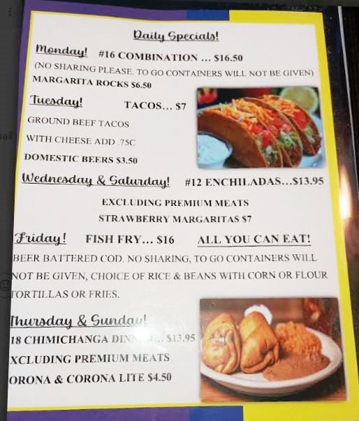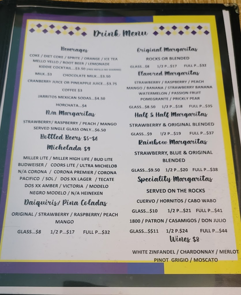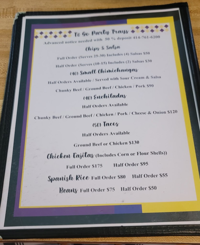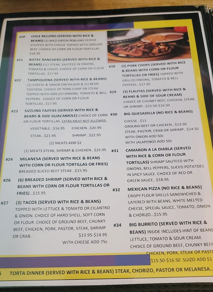 Good to have semi-authentic Mexican food. The attached menu photos are from Feb 14, 2025. We wish they'd provide take out menus. Maybe they're like some restaurants who discourage take out?