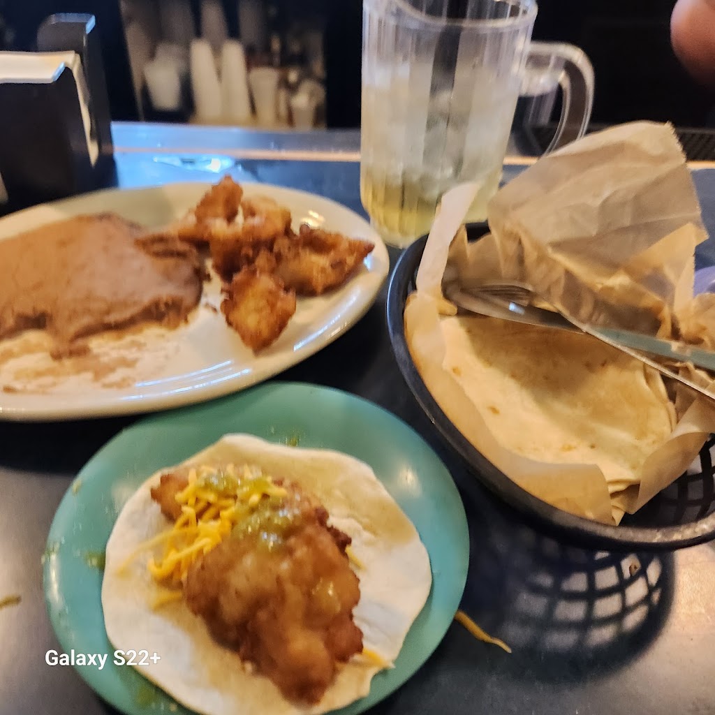 I went there and got the steak burrito and a side of beans. The chips were unusually wet with oil. When I compared the chips I had to other’s chips it looked like they dumped oil on top of mine, the chips were also very salty. The steak burrito was unusually small but good, and the beans were a usual size and good. The hot sauce they have goes good with most dishes. The Friday fish fry is amazingly good…..