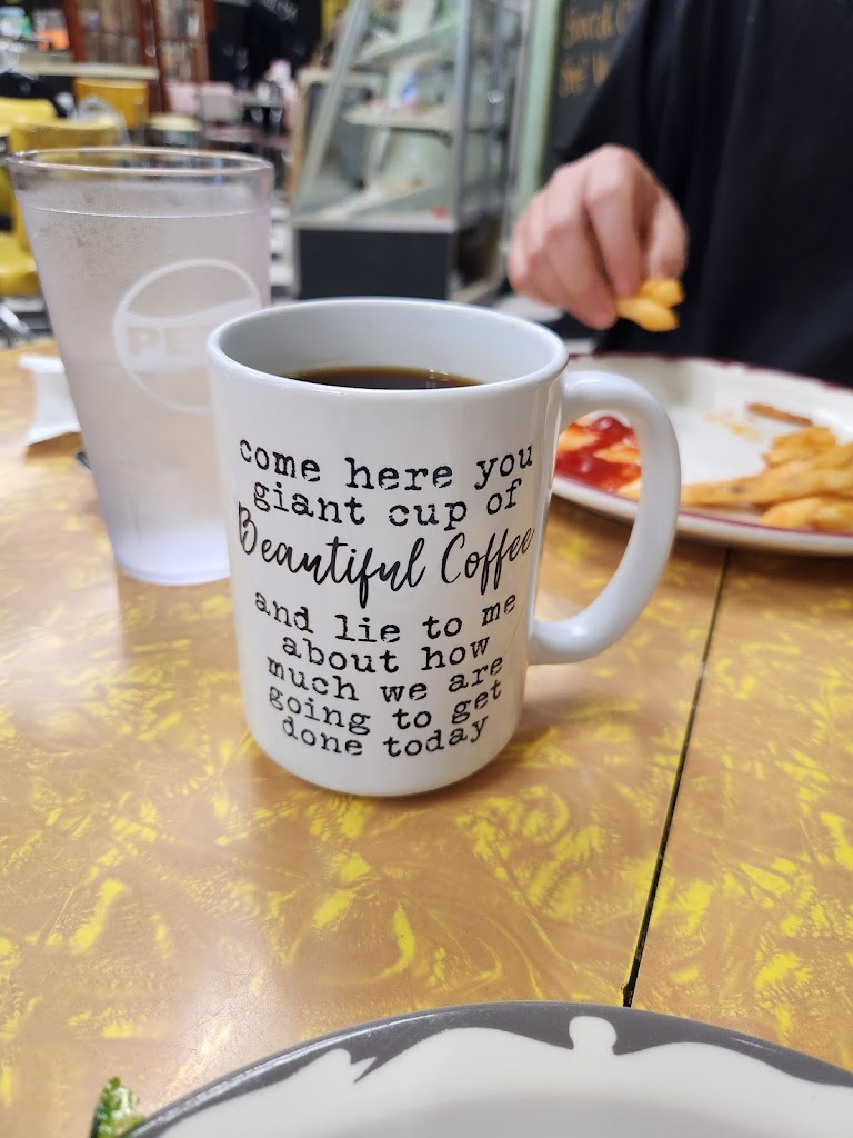 At this the owner lost it. She was VERY offended by my mom stopping them from filling her coffee and had such a huge attitude as she told us to leave. We hadn’t been throwing a fit about it. It was just a matter of it we wanted to wait longer for my son to eat or leave and get food quickly somewhere else.