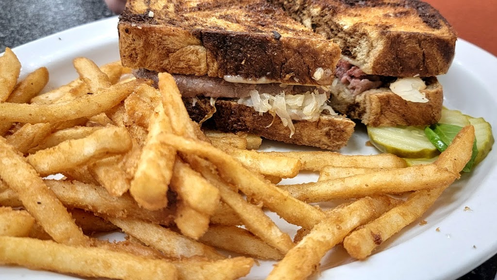 Downtown locale, street parking. Busy but efficient so wait wasn't long. Quirky diner/ café serving breakfast and lunch. Menu includes typical breakfast and lunch offerings as well as tempting specials. The brisket reuben sandwich on home made pumpernickle was a popular and delicious choice. Tasty hash browns with breakfast items were crisp
