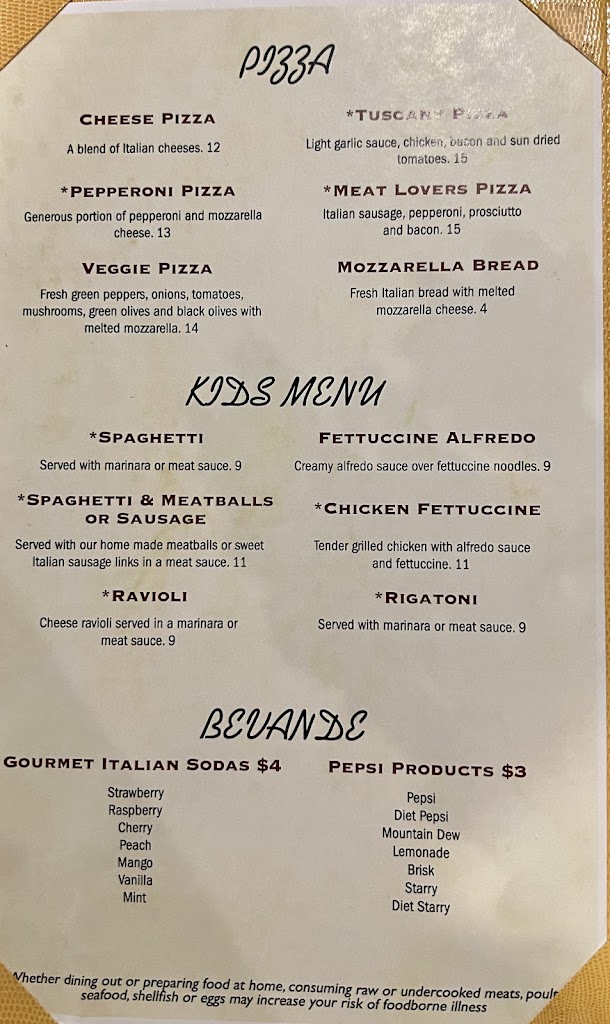 We were recommended to this place.!! The atmosphere was very nice... Our waitress Charlene was very friendly.... She was very quick on everything.!!! We ended up having the Beef Ravioli and Sauce and it was very tasty and also the Tuscany Pizza,! It was very clean and the decor was wonderful... We would definitely go back there.!!!