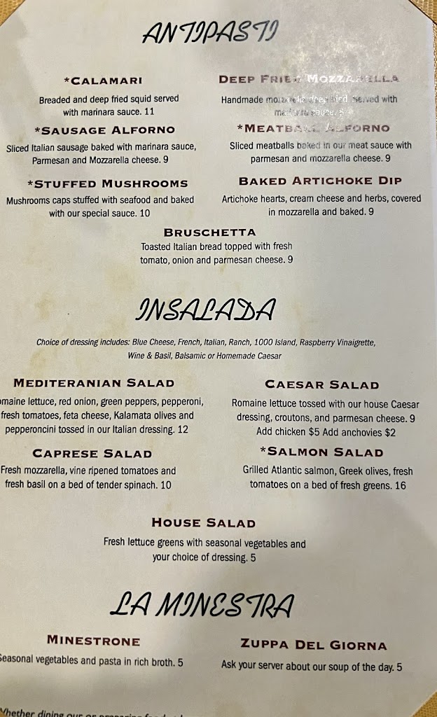 Great food and decent pricing for Italian. We ordered the baked artichoke dip and that was definitely a highlight. Bread is homemade and delicious. I ordered the fettuccine carbonara as my entre and really enjoyed it. Service was very friendly and on point.