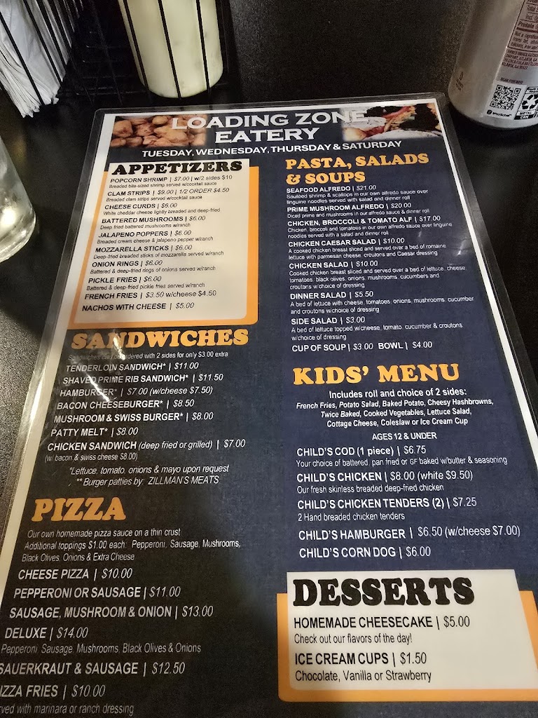 I've never had a bad meal at the Loading Zone & I've eaten there quite a few times. 😉 Some of my favorites entrees include steak, lobster, shrimp, scallops, clam strips & Olivinos. For sides, I love the twice baked, cheesy hashbrowns, coleslaw, & salad (lots of homemade dressings are available). The cheesecakes are wonderful. The soups are also top notch! As far as food goes, I don't think that you could make a wrong choice here. The service is also spectacular. All around great experience every single time!!! 😃