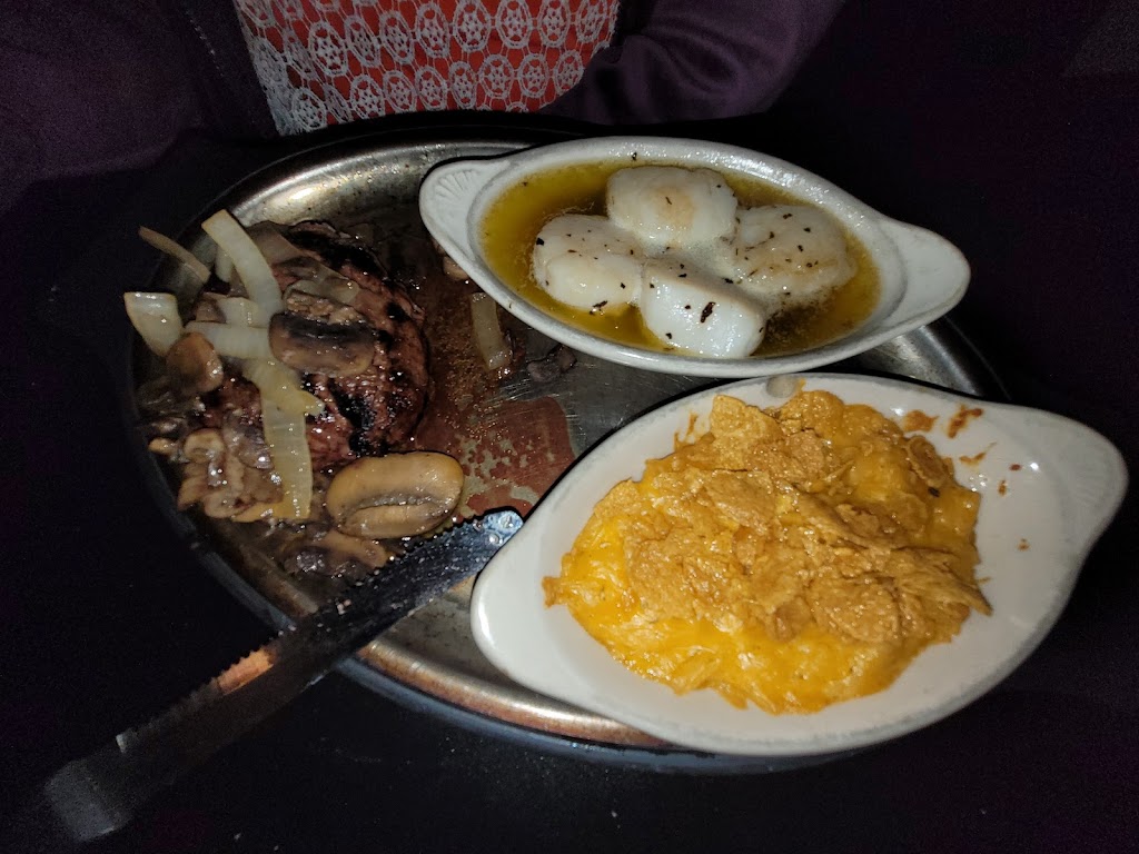 They have a good menu, a lot of choices, and something for everyone to eat. The staff is always friendly and the food is always good. I took my mom out to dinner and a show and let the staff know. They were very nice about getting our food to us quickly. Mom got the tenderloin and scallops, with cheesy hash browns. I got the king cut prime rib, baked potato, and sauteed onions.