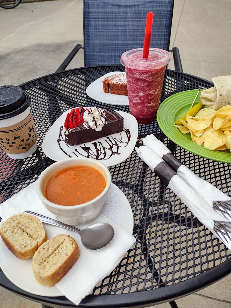 Friendly clean great desserts and coffee! Beautiful outdoor patio