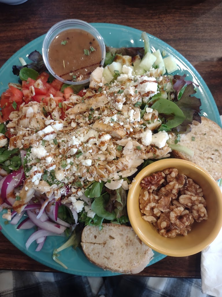 Love this place with the huge beautiful patio! I had a fantastic ( chicken, veggies & walnuts)salad today with a cold brew coffee.