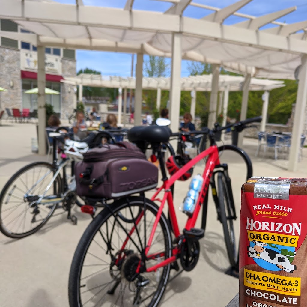 Great off the bugline trail- perfect for bikers and hikers to take a seat and cute cafe with drinks and great salads!