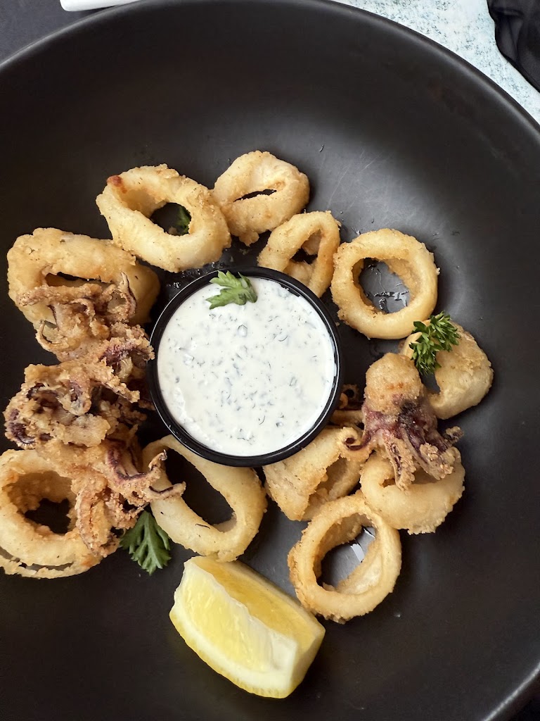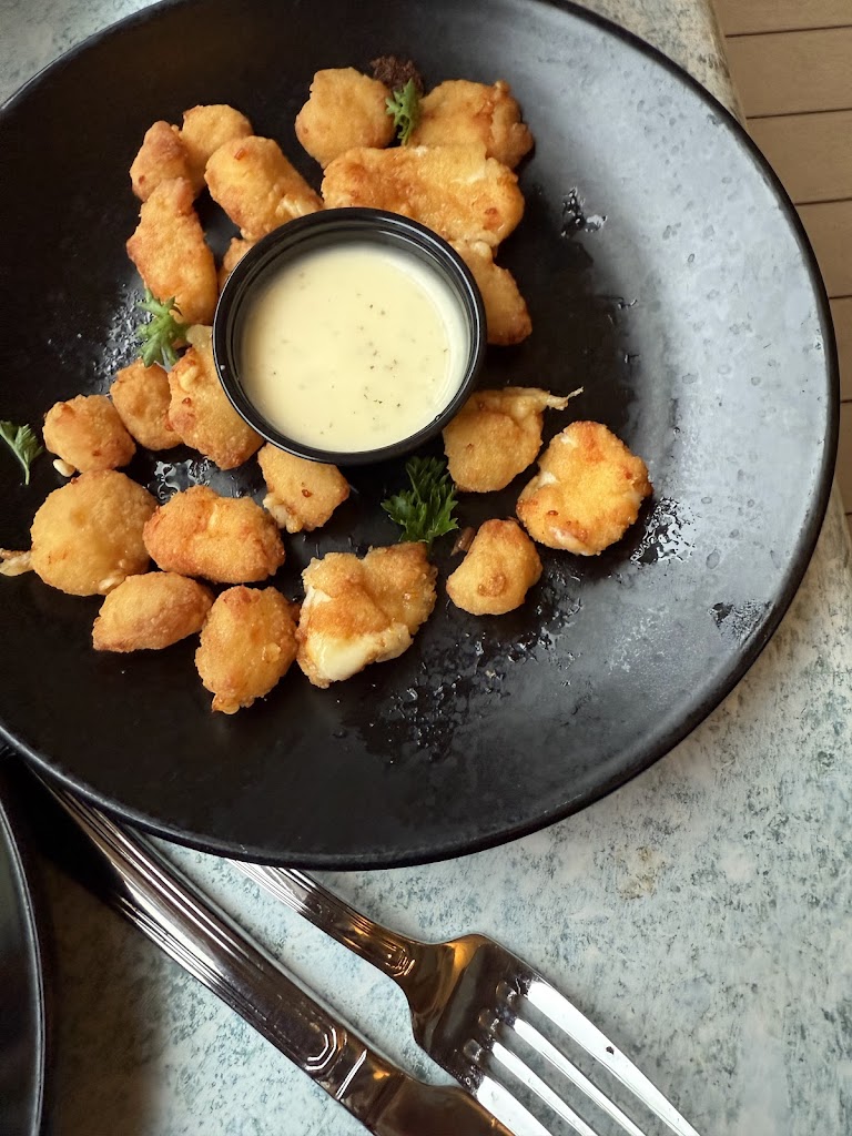 Came here just planning to grab a drink at the bar but ended up ordering some appetizers, the cheese curds and calamari. Both were delicious! It was actually my first time having real Wisconsin cheese curds in Wisconsin, so that was a fun first.