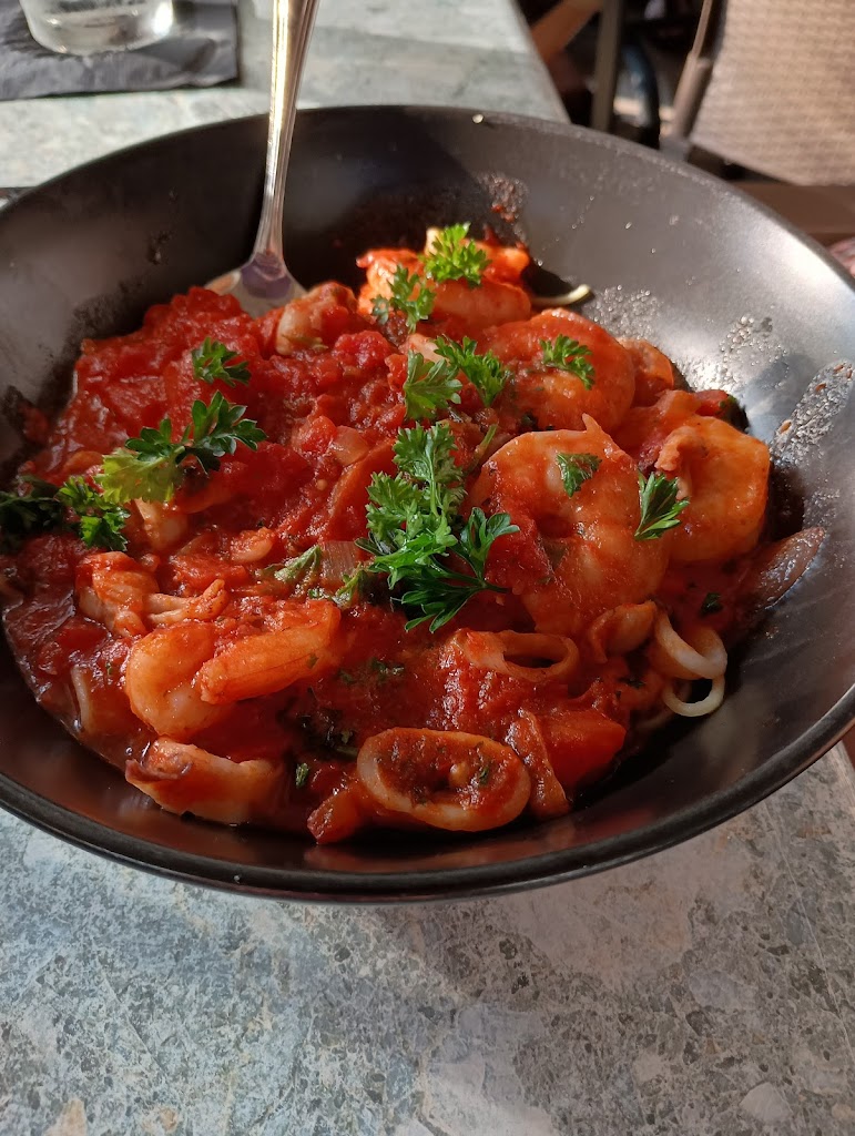 This was absolutely terrible. The pasta was clearly pre-cooked from the day before, barely warmed through, with no sense of freshness. The “sauce” was nothing more than canned tomatoes with some seafood tossed in and reheated. No simmering, no depth of flavor — it honestly felt like something thrown together in a microwave at home.