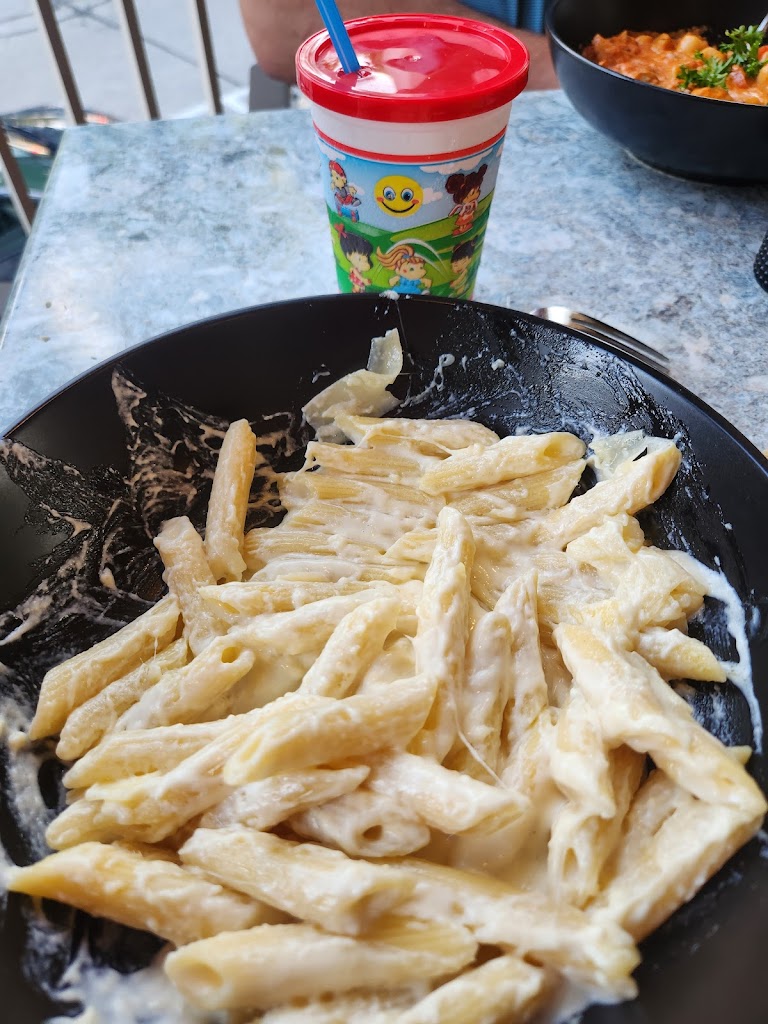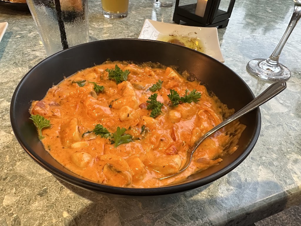 I got the chicken mushroom pasta (bartender’s recommendation), and it was really good. My boyfriend and his stepdad got the chicken Parmesan, and his mom got the korma pasta, but neither of us liked that one much, glad I didn’t choose it.