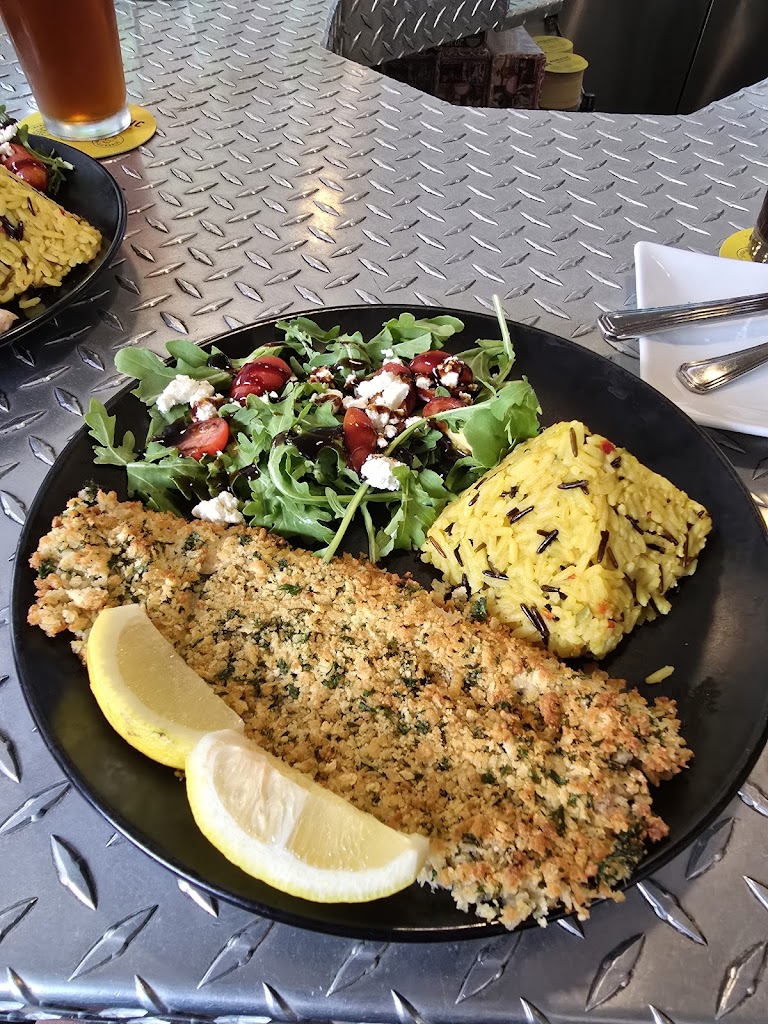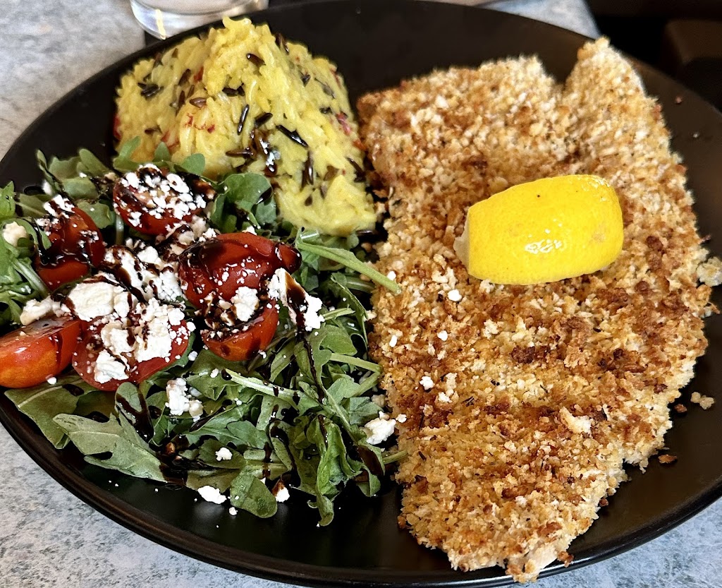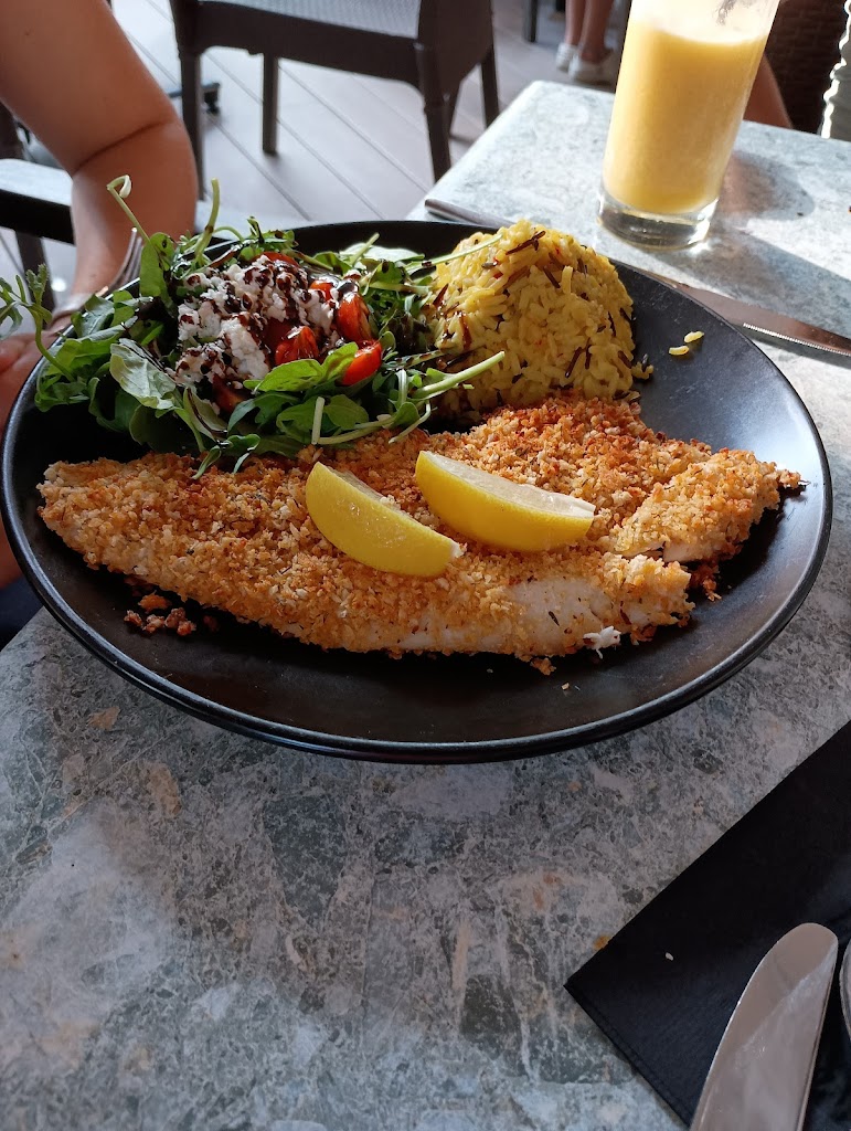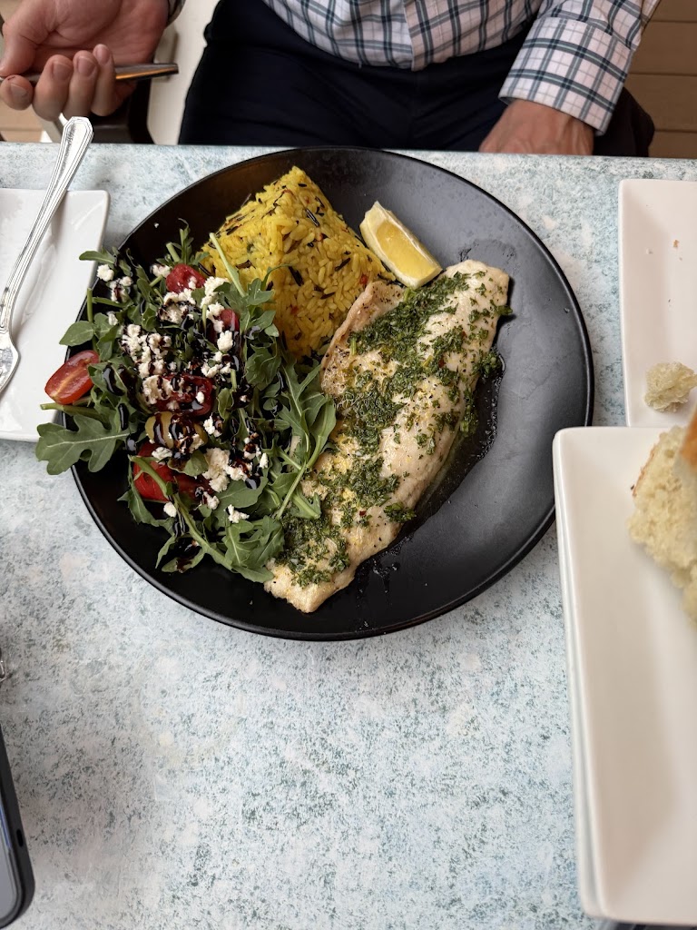 On vacation 1st time here. Staff friendly. After ordering you are given bread and oil. Very good taste. I ordered the parmasan crusted whitefish. It came with rice and a salad. Overall taste was outstanding. Ordered the cherry cheesecake also. Very moist. Definitely will be back!