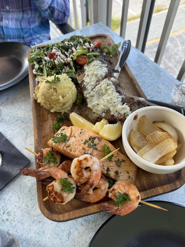 The food was good, but they got our order wrong. We were a part of six. It's an outdoor restaurant, so it was quite chilly, but they were able to fit our group upstairs. The heaters helped. It is a bit pricey for an outdoor eating experience, but it is Door County.