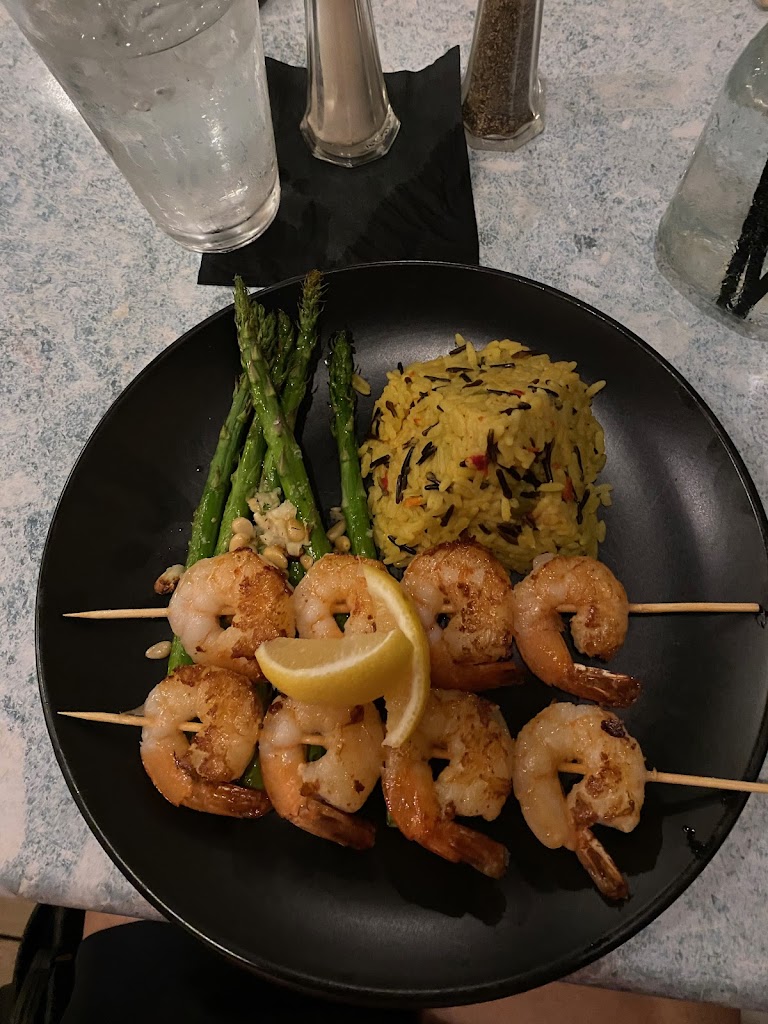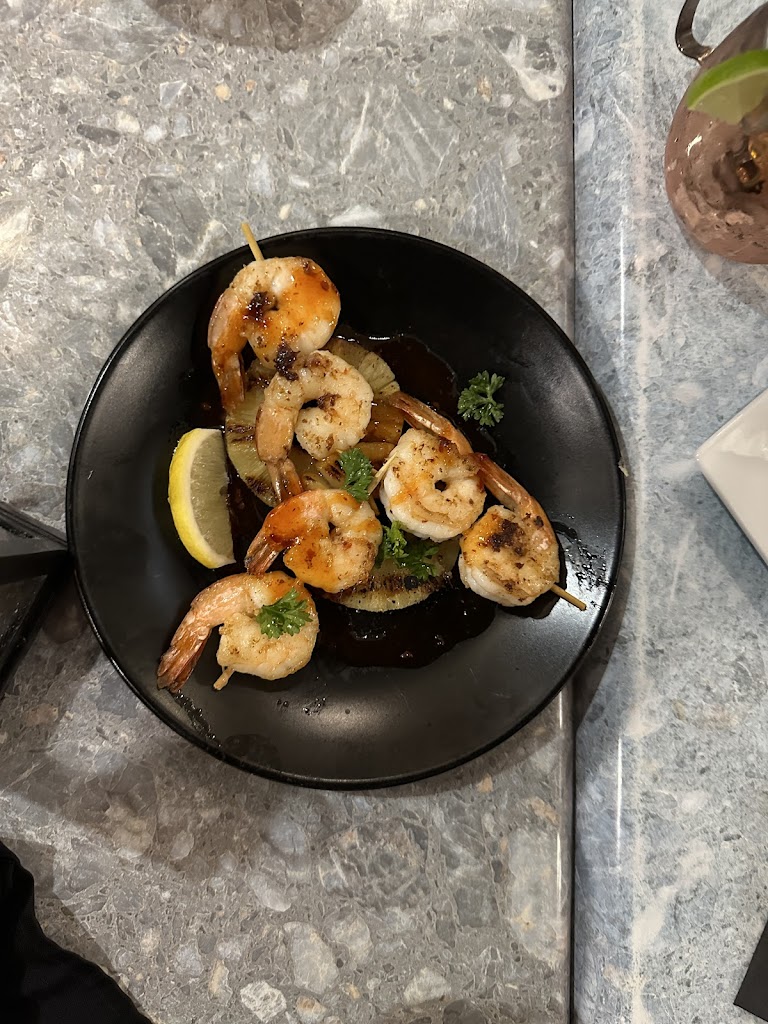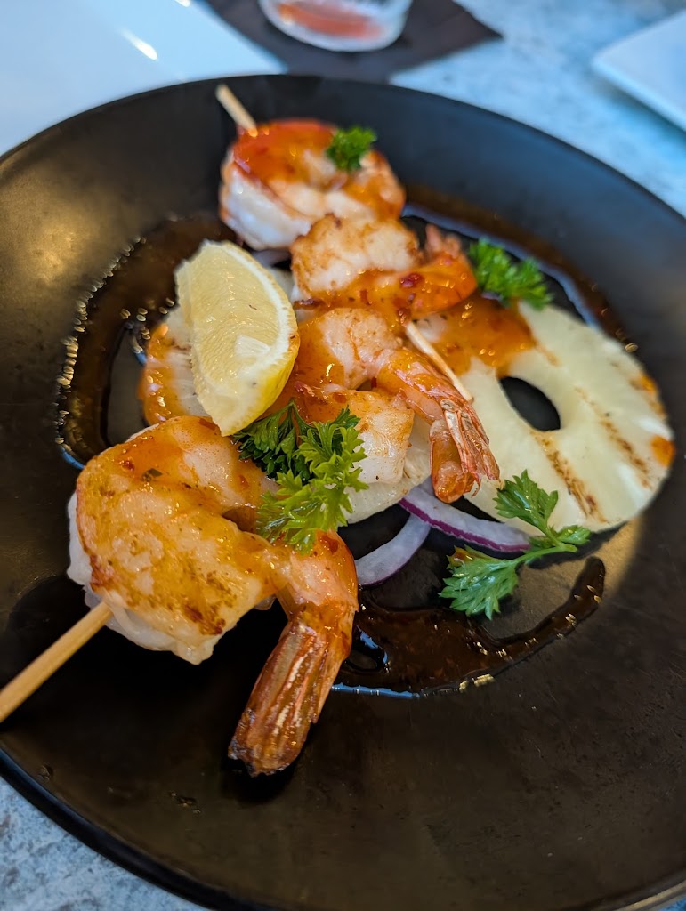 Thank you for staying open later than 5 pm!! We had been site seeing all day and wanted to get a bite to eat later in the evening and your place was one of the only places open to get dinner. We had wonderful service!! Our server was so helpful when we asked questions about the menu. I had the shrimp dinner and it was delicious! The little fish plate (see picture) was for the tails. So cute! It was fun to see how the rice was presented on the plate in the form of a pyramid. Loved the atmosphere. We had a table on the top level and looked out onto the street below us.