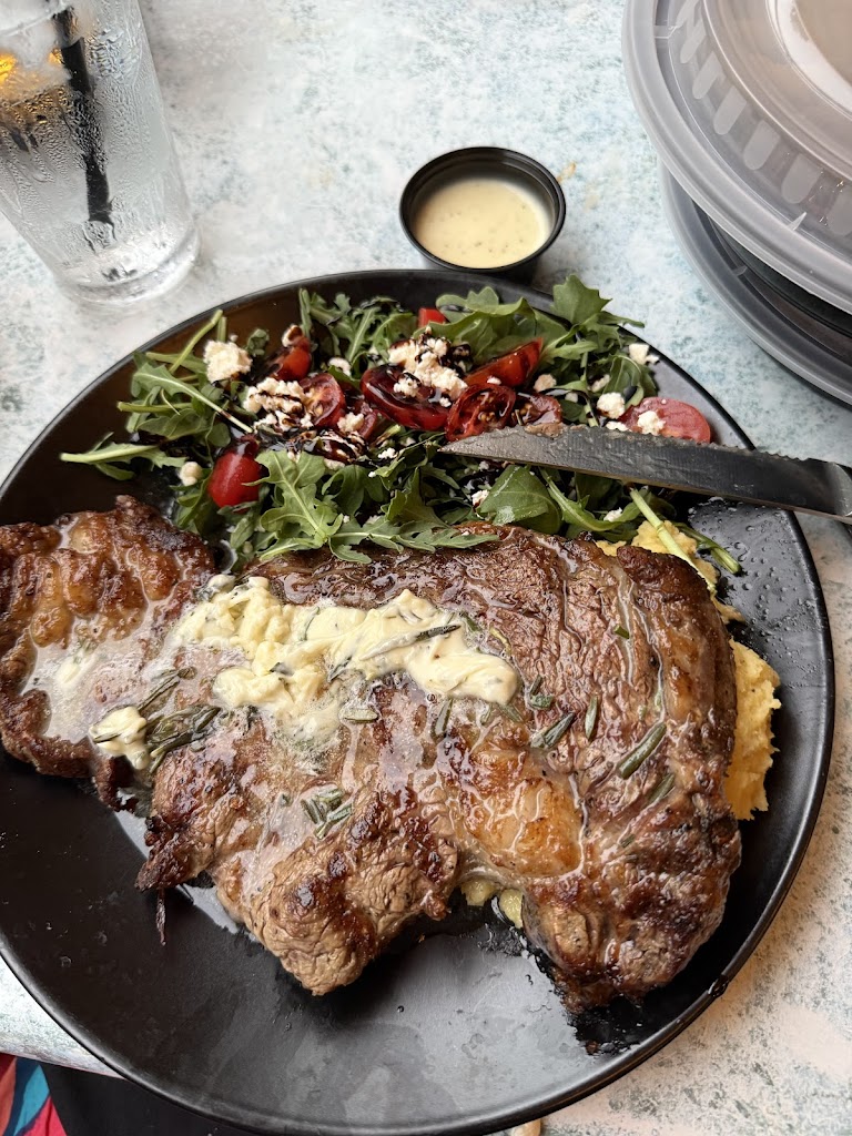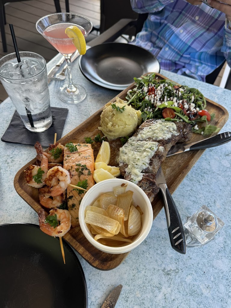 We ended up hanging out at the bar for about an hour or two just enjoying drinks and apps. By the time we decided we wanted dinner, it had gotten pretty busy. The bartender let us know it might be hard to get a table, and when my boyfriend’s stepdad went to check, the dining room was fully booked. So we decided to stay and have dinner at the bar, which actually ended up being a good decision. Our bartender was awesome, super friendly, easy to talk to, and really made the whole experience fun.