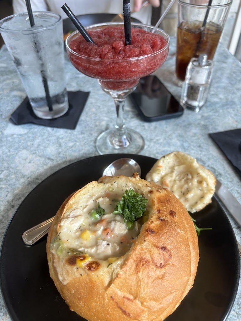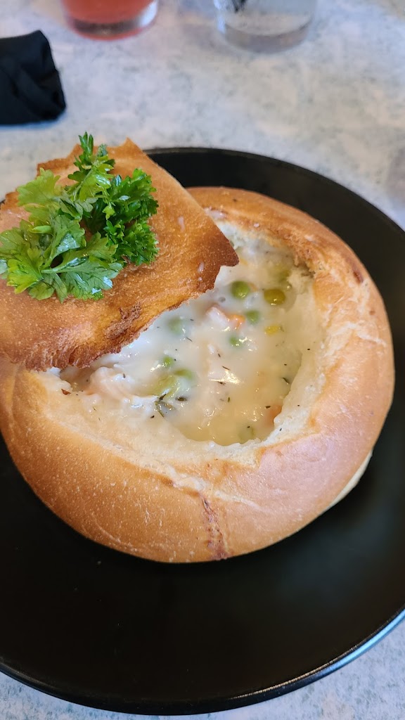 Chicken pot pie in an edible bread bowl!? What will they think of next.